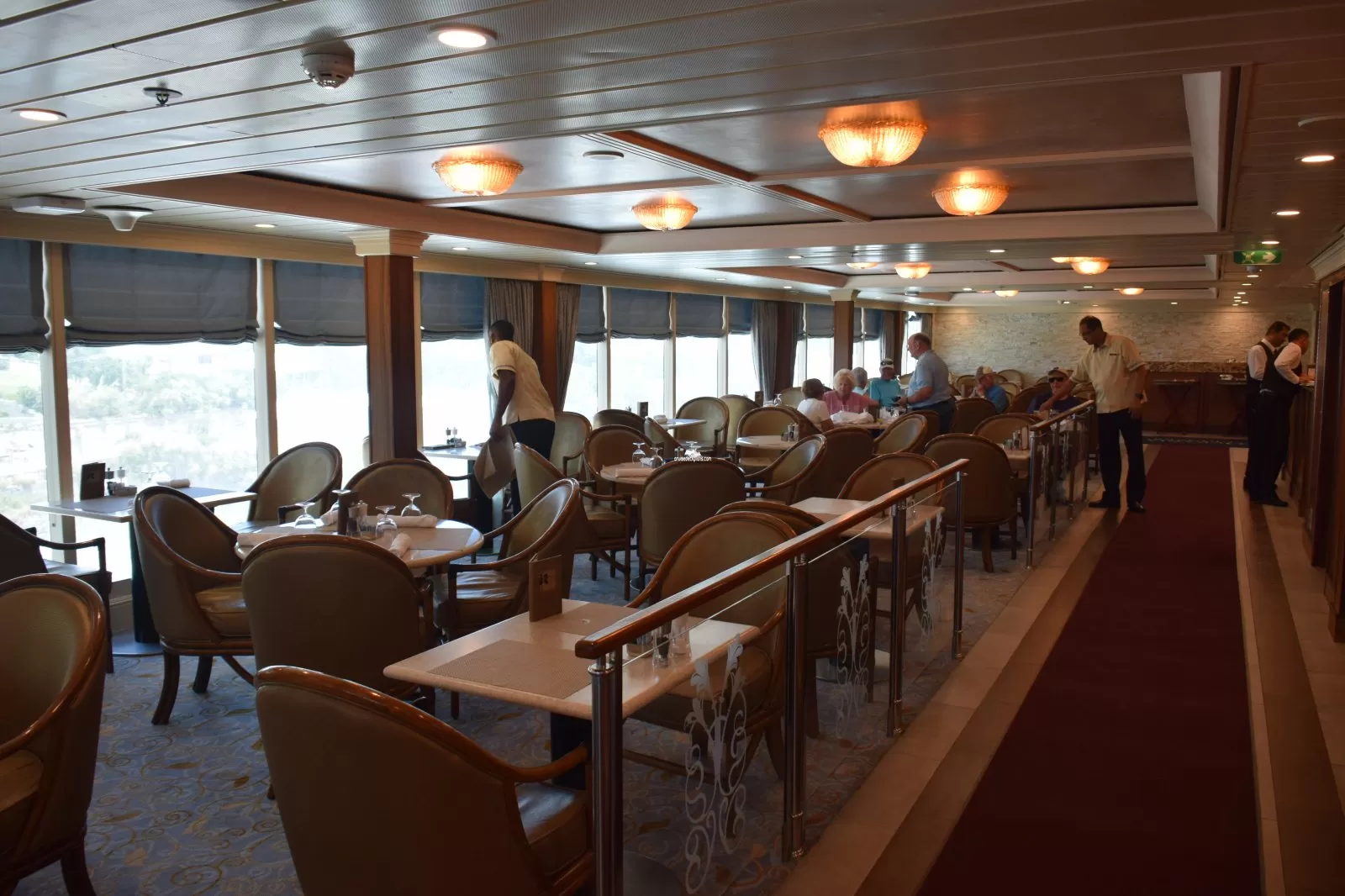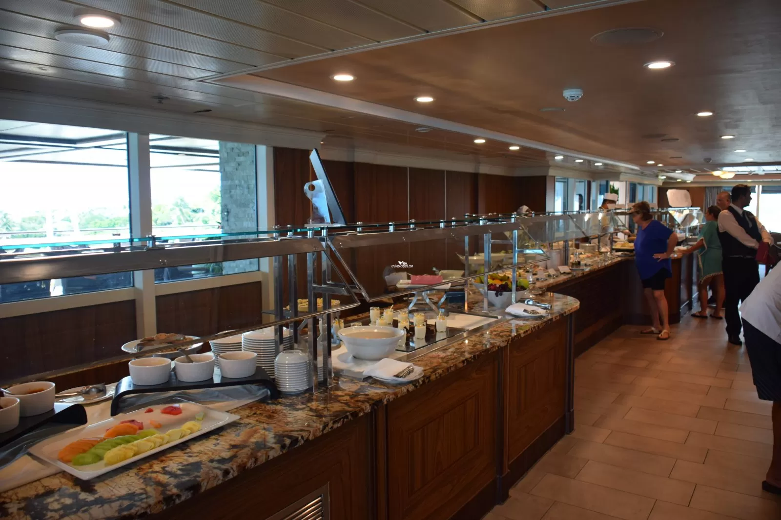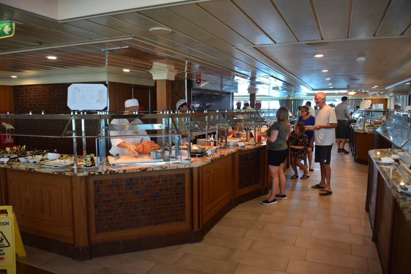 Both breakfast and lunch buffets can be found here and you may dine either indoor or outdoor as the Café opens onto both the teak-lined pool deck or aft onto the Terrace.Waves Grill