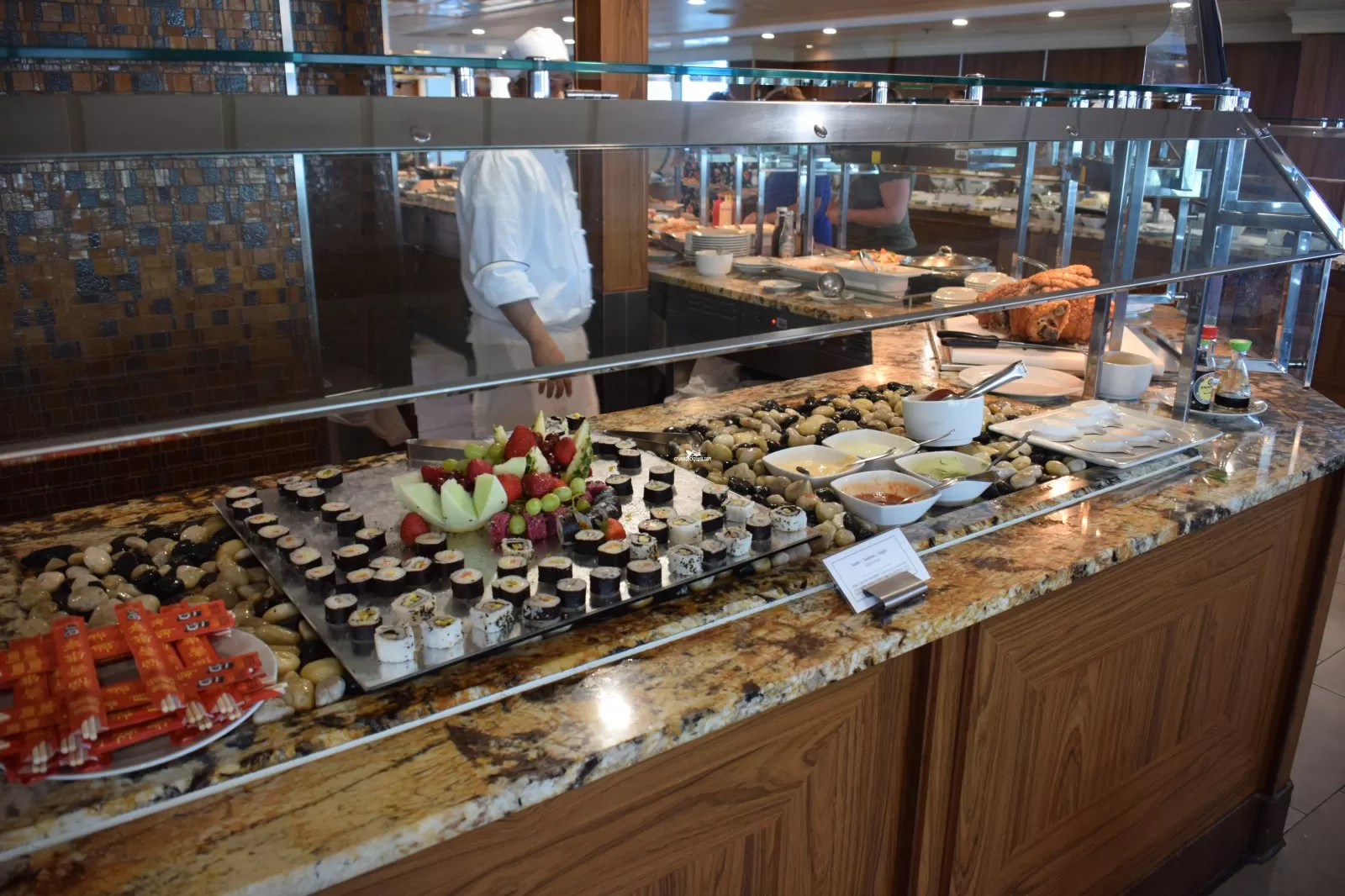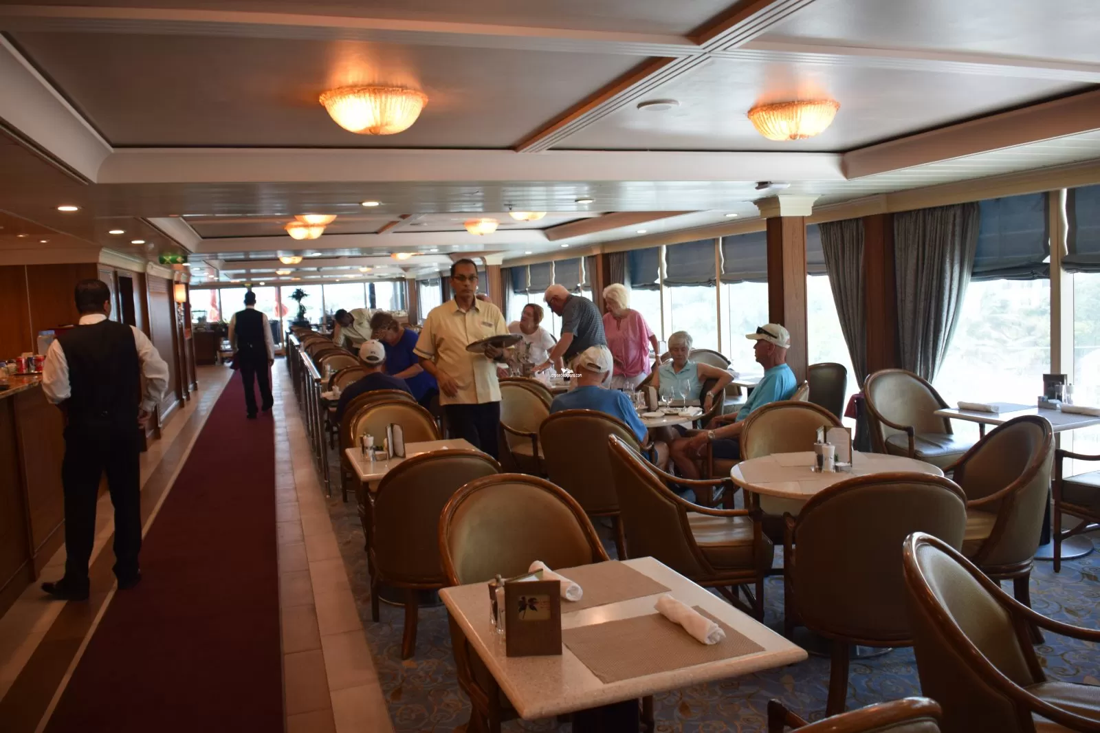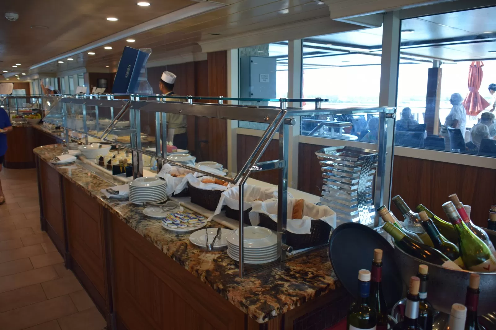 Both breakfast and lunch buffets can be found here and you may dine either indoor or outdoor as the Café opens onto both the teak-lined pool deck or aft onto the Terrace.Waves Grill