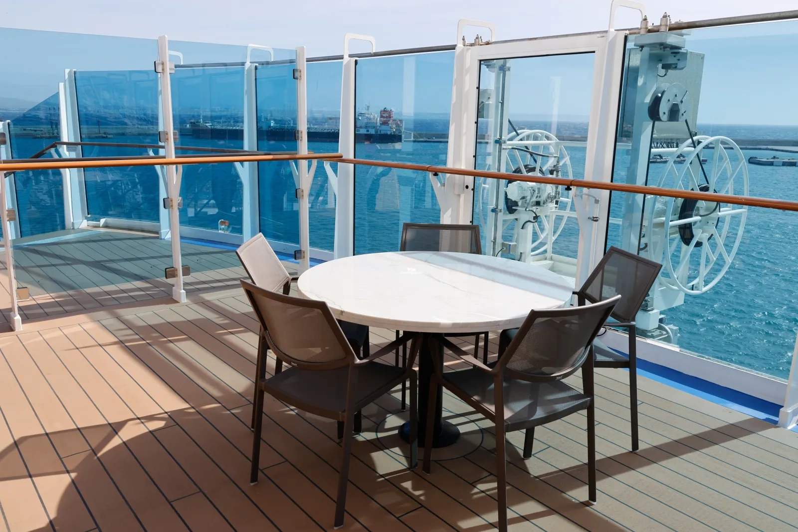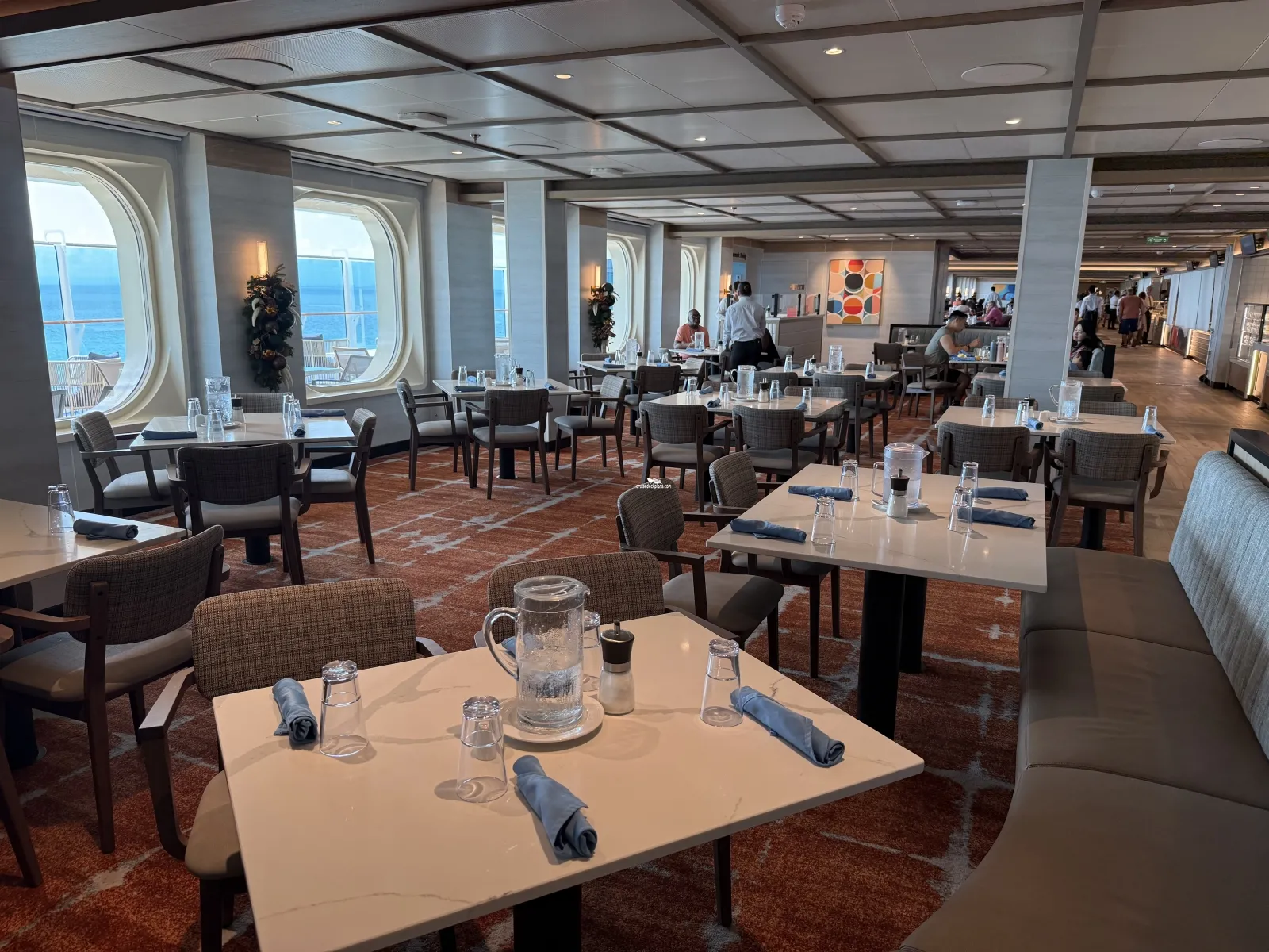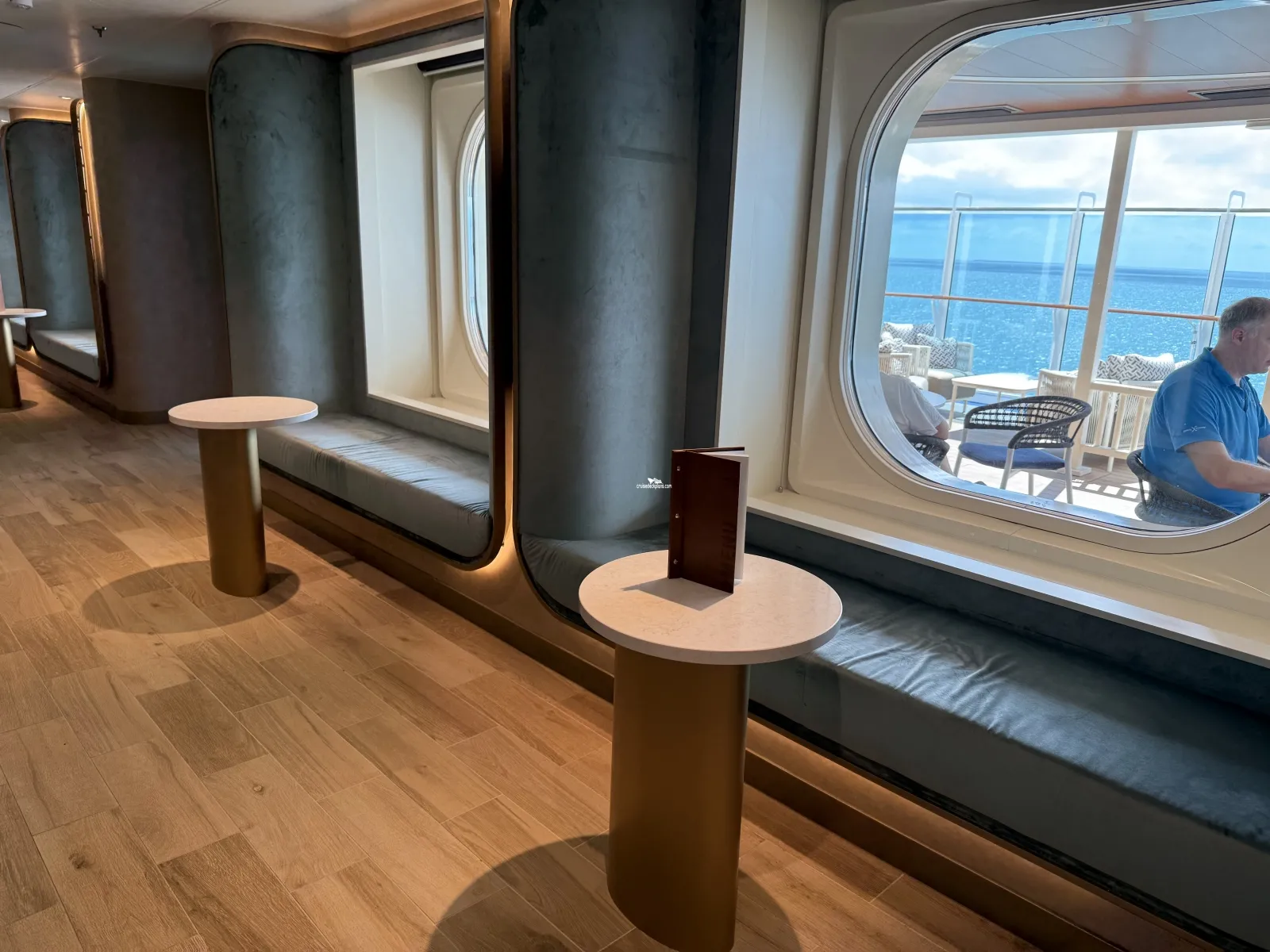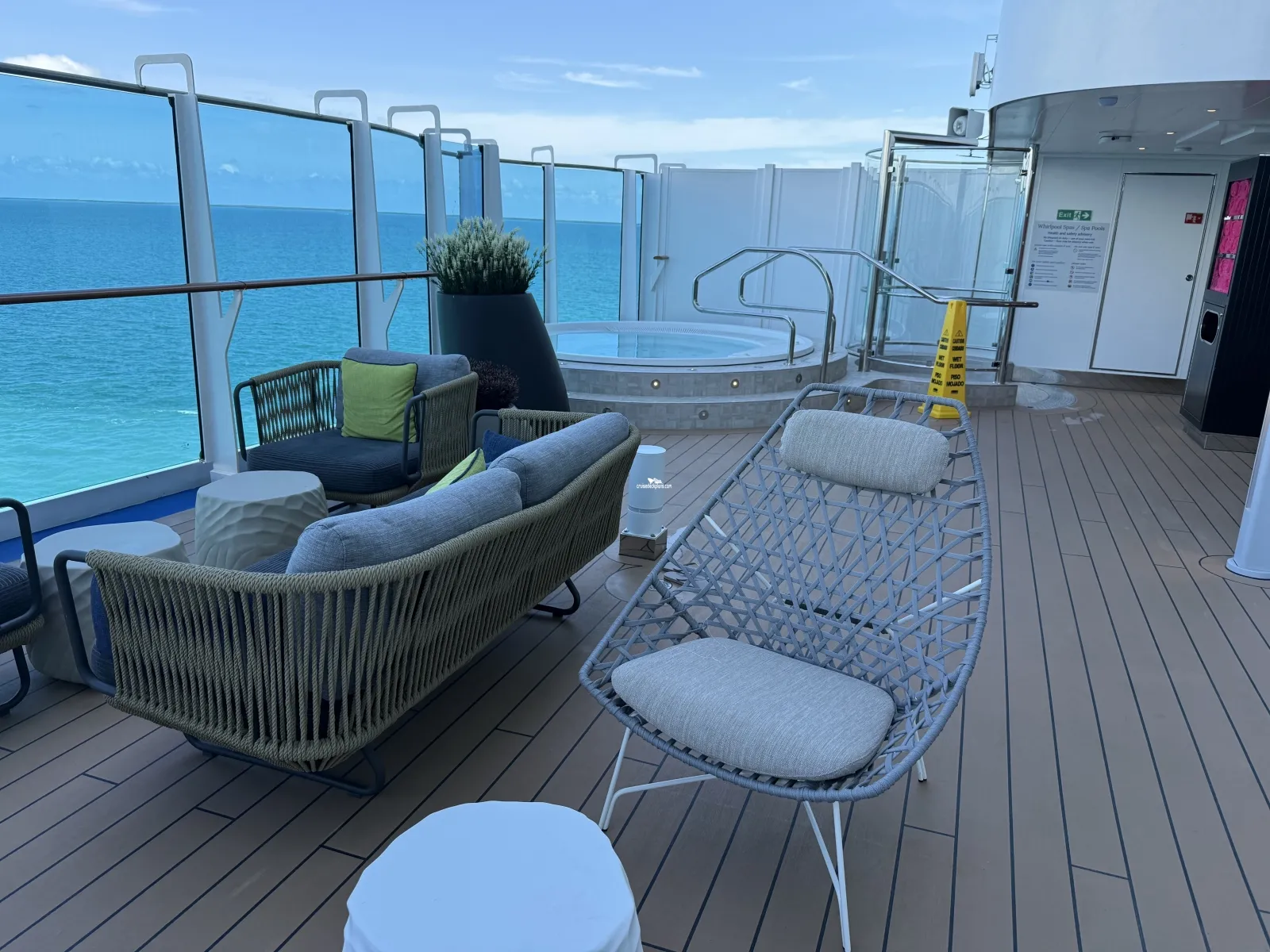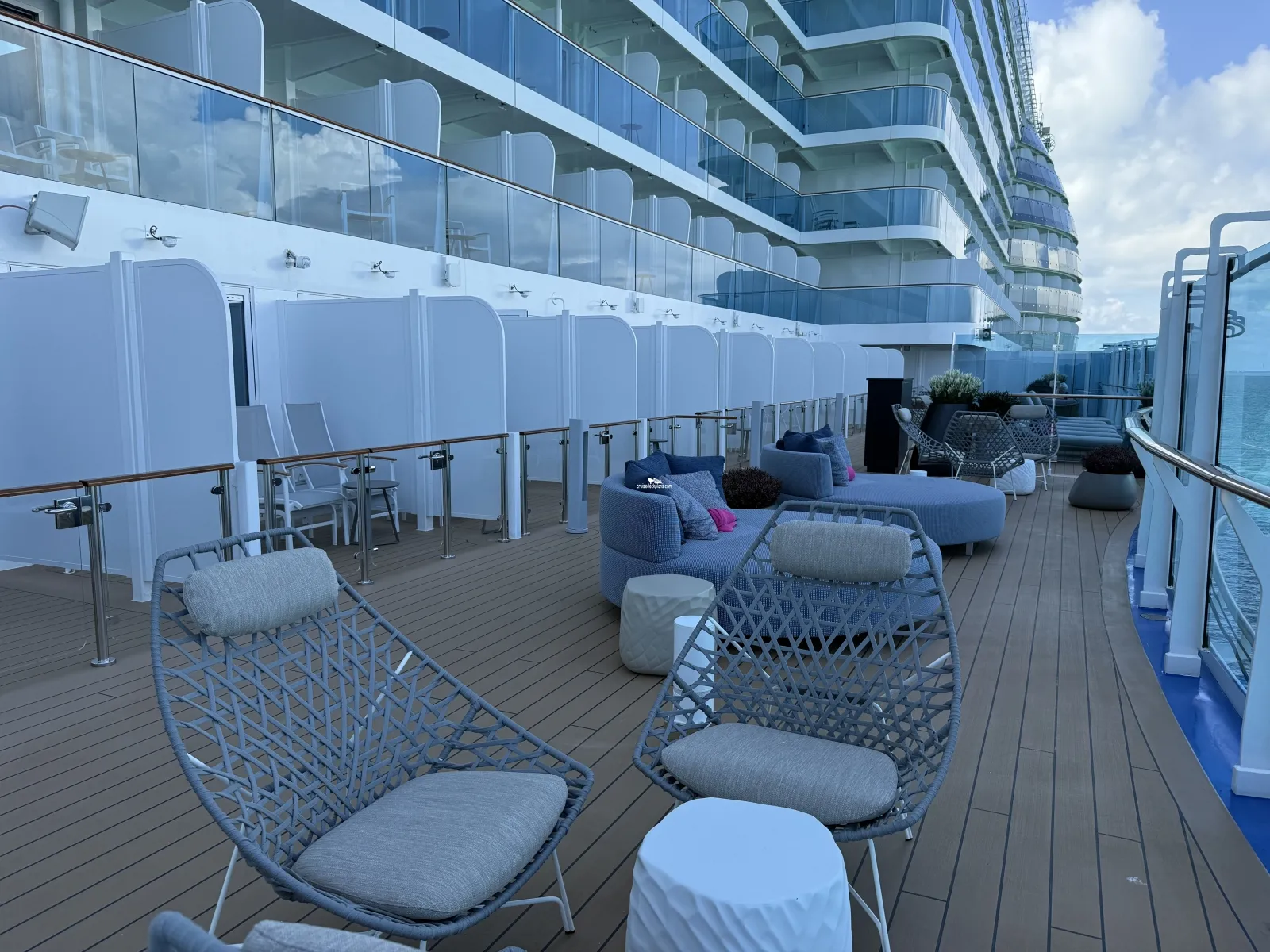 A private deck area (located forward on both the starboard and port side of ship) reserved for guests in Reserved Cabanas Staterooms. Key card required. The deck has loungers, soft seating, outdoor shower, hot tub.Americana Diner