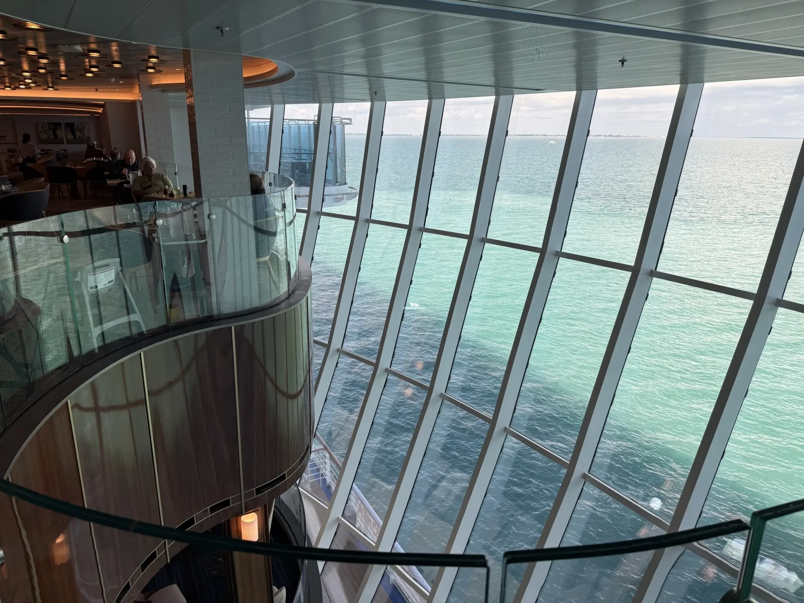 Three level atrium featuring large open windows to view the passing sea. The lower level features a bar and lounge area. Games shows and bands often are hosted here with space for up to 300 people. The sound will affect all nearby venues.Cabana Deck