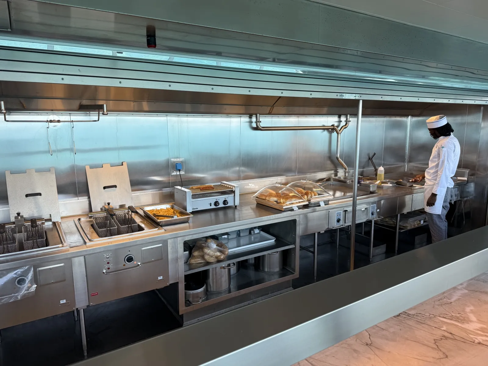 Now located on aft of deck 9. No reservations serving an all day breakfast, burgers, sandwiches and other finger foods.Cabin Check Tool