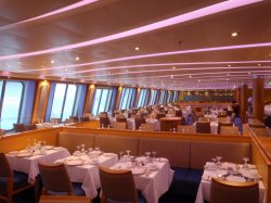 Two level dining room located midship that seats 948 people. Located midship and offers sit-down waiter service. Brunch is served on deck 3 from 8:30 to 1:00 p.m. (sea days.) On port days deck 3 is open from 7:30 to 9:30 (times subject to change) for breakfast. Open nightly for dinner starting at 5:45. Currently you time seating is on deck 3 and assigned dining is on deck 4.Circle C