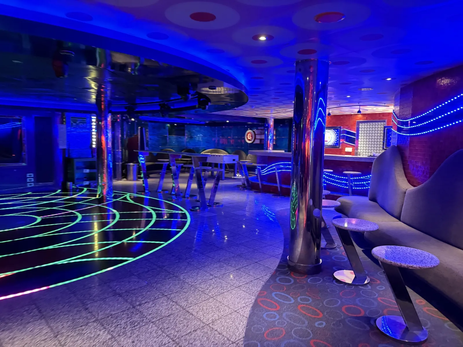 Ships atrium. On first level is dance floor and bar, lounge area, guest services desk, shore excursion desk. This is one of main entrance areas of the ship. Guest services is open 24 hours a day and also is location for lost and found. Shore excursion desk has information about ship sponsored shore excursions that you can purchase. There is also a seating area, 6 computer terminals for accessing the internet, a dance floor and this area features live music in afternoons and evening.Warehouse