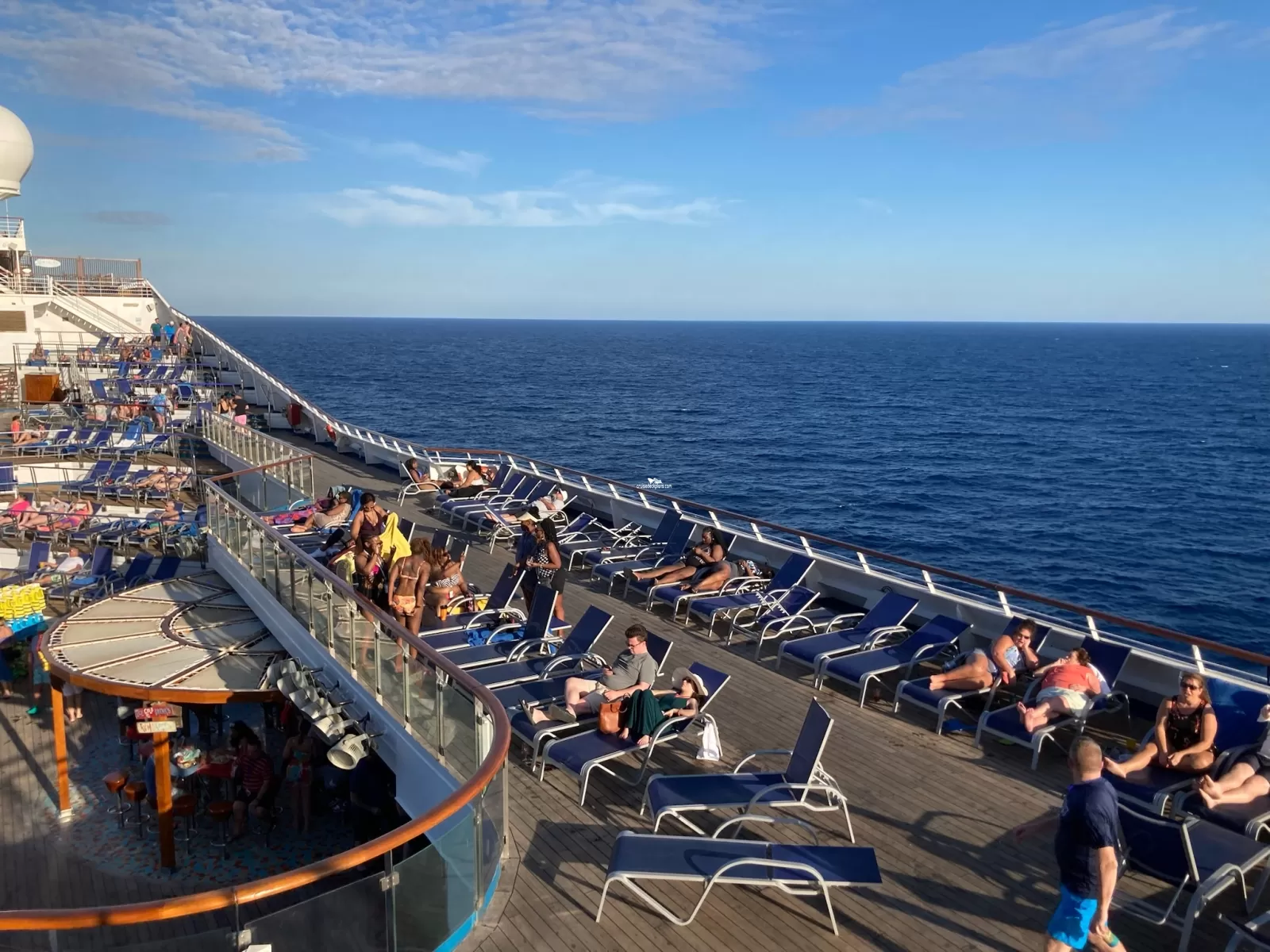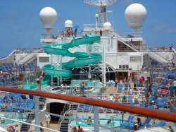 Open air pool near the base of the water slide. Has a nearby spa with lounge chairsPanorama Deck