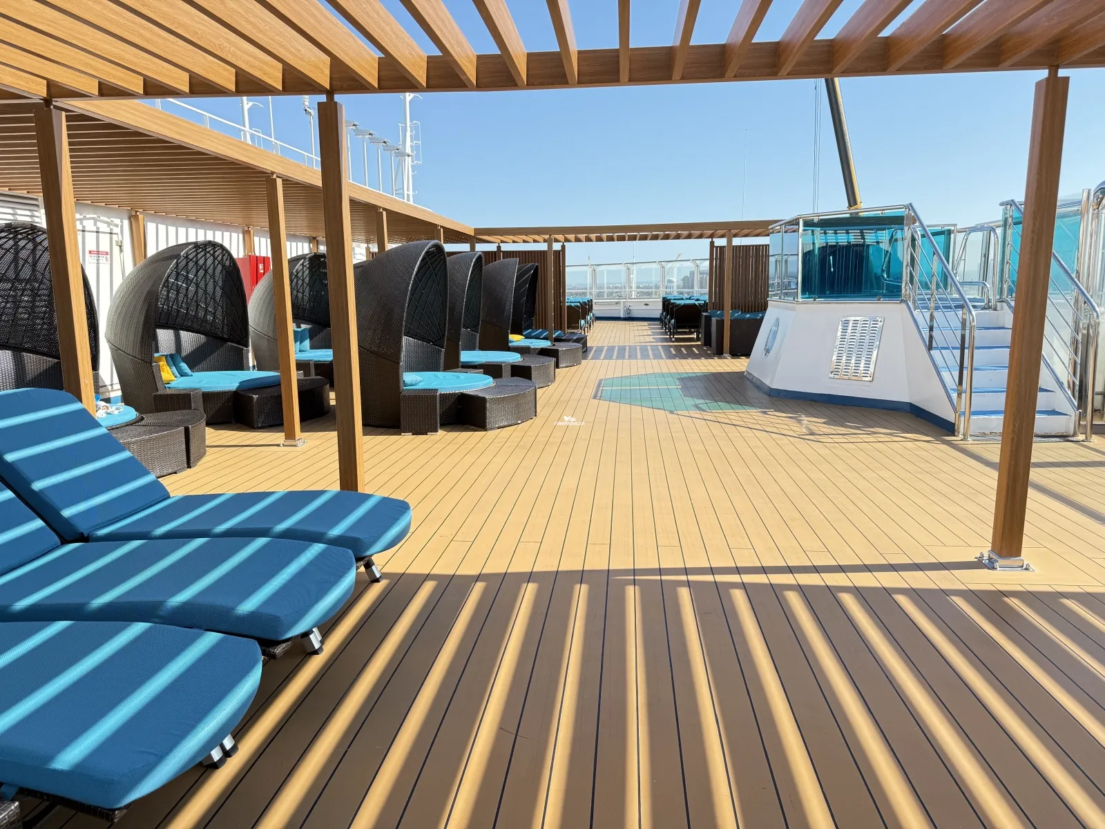 This tool will help you see what is on the deck above and the deck below your stateroom. Don't be surprised by loud chair scraping noise above you.