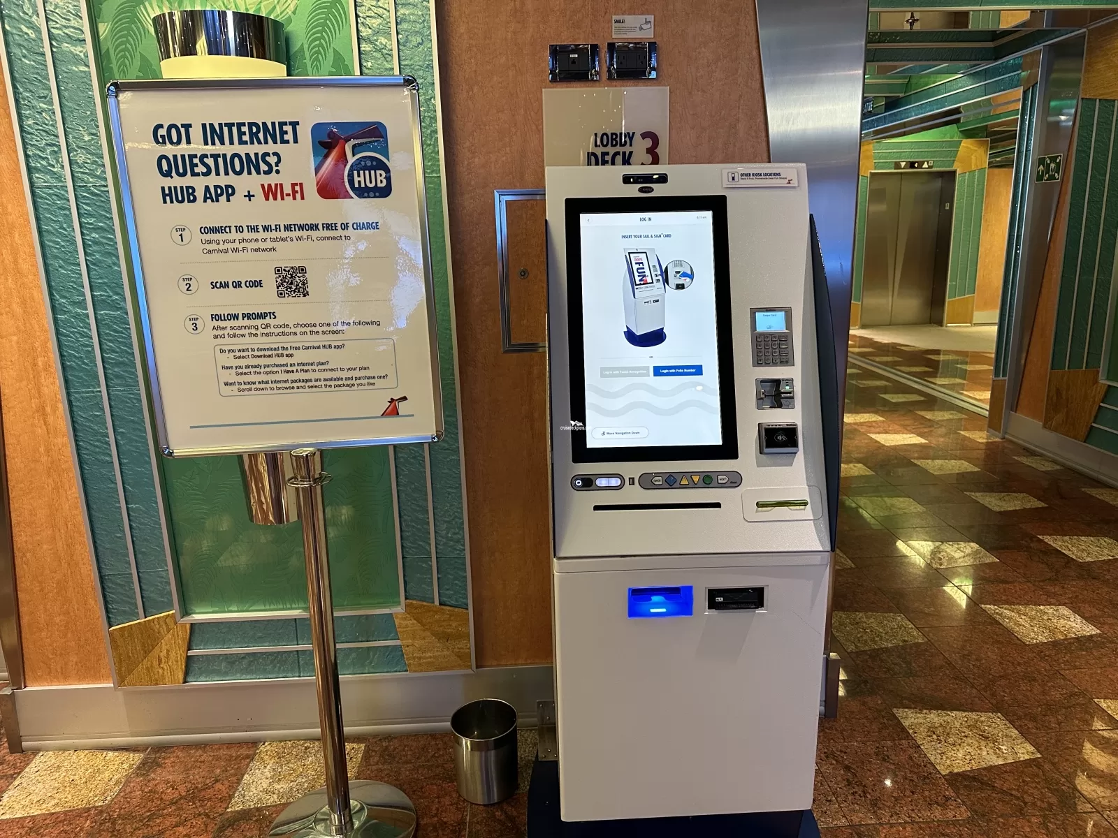 Ships atrium. On first level is dance floor and bar, lounge area, guest services desk, shore excursion desk. This is one of main entrance areas of the ship. Guest services is open 24 hours a day and also is location for lost and found. Shore excursion desk has information about ship sponsored shore excursions that you can purchase. There is also a seating area, 6 computer terminals for accessing the internet, a dance floor and this area features live music in afternoons and evening.Cabin Check Tool