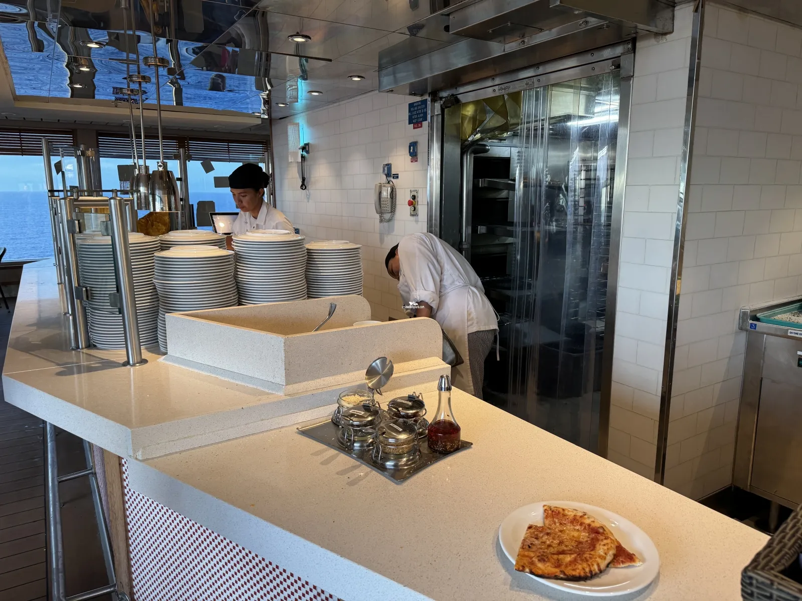 Serves pizza 24 hours a day. Self-service featuring complimentary, delicious, hand-tossed, authentic Italian-style, thin-crusted pies made in a traditional pizza oven. There are dedicated tables and seating.Seafood Shack