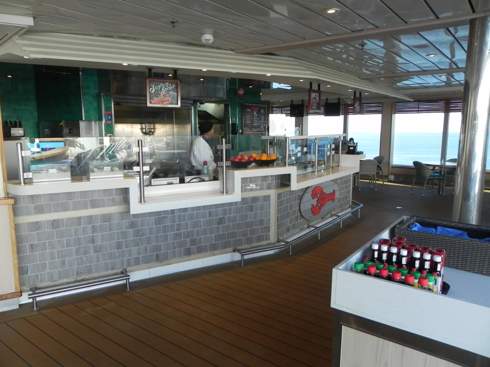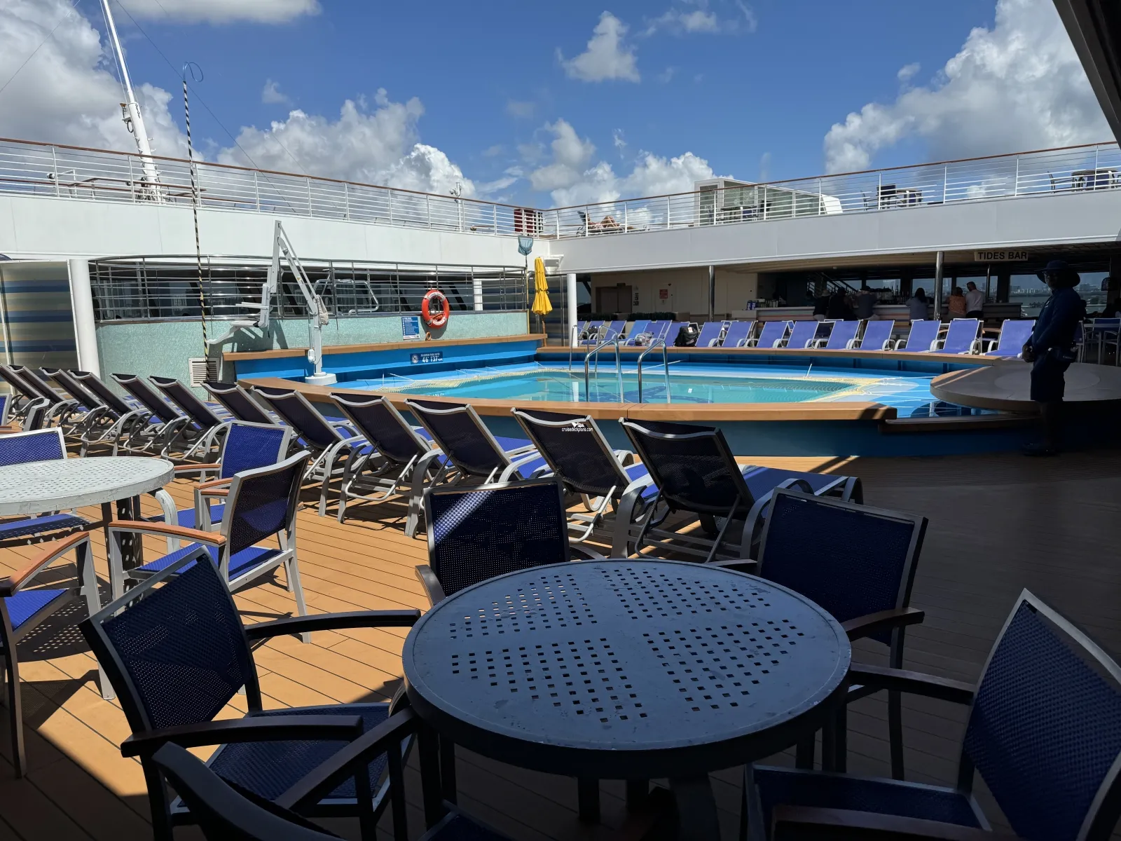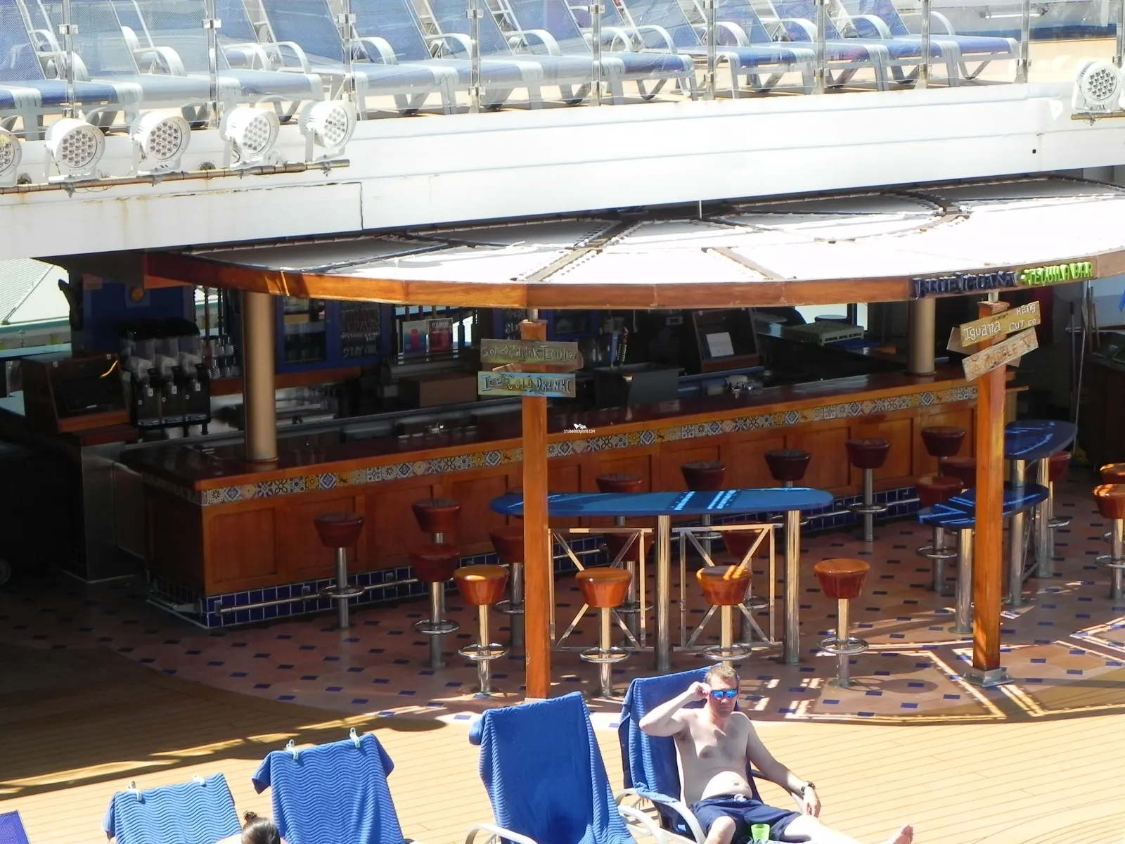 Main midship pool with bars, hot tubs and lounge chairs.Aft Pool