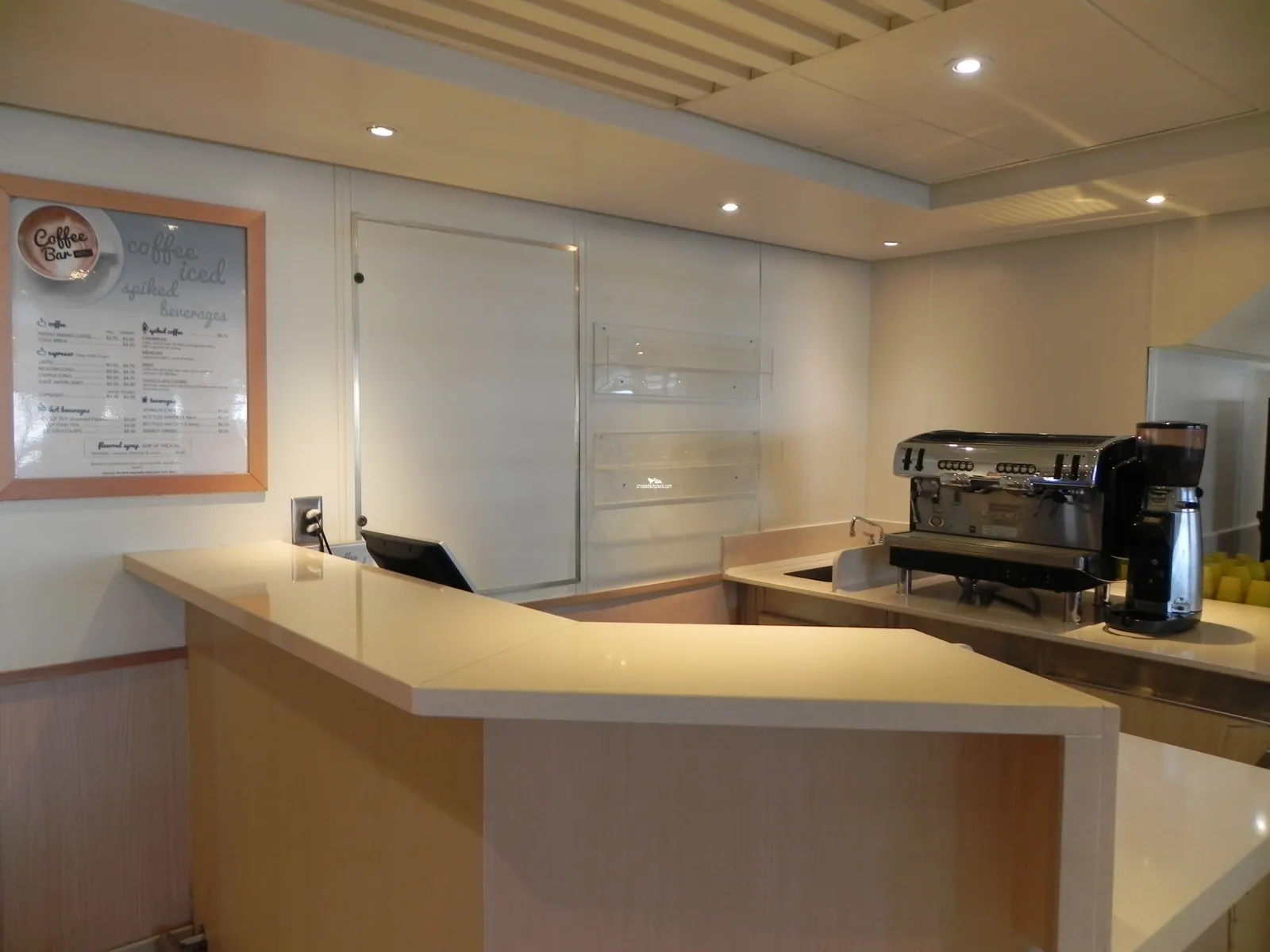Aft pool with two hot tubs and covered retractable glass roof.Pizzeria Del Capitano