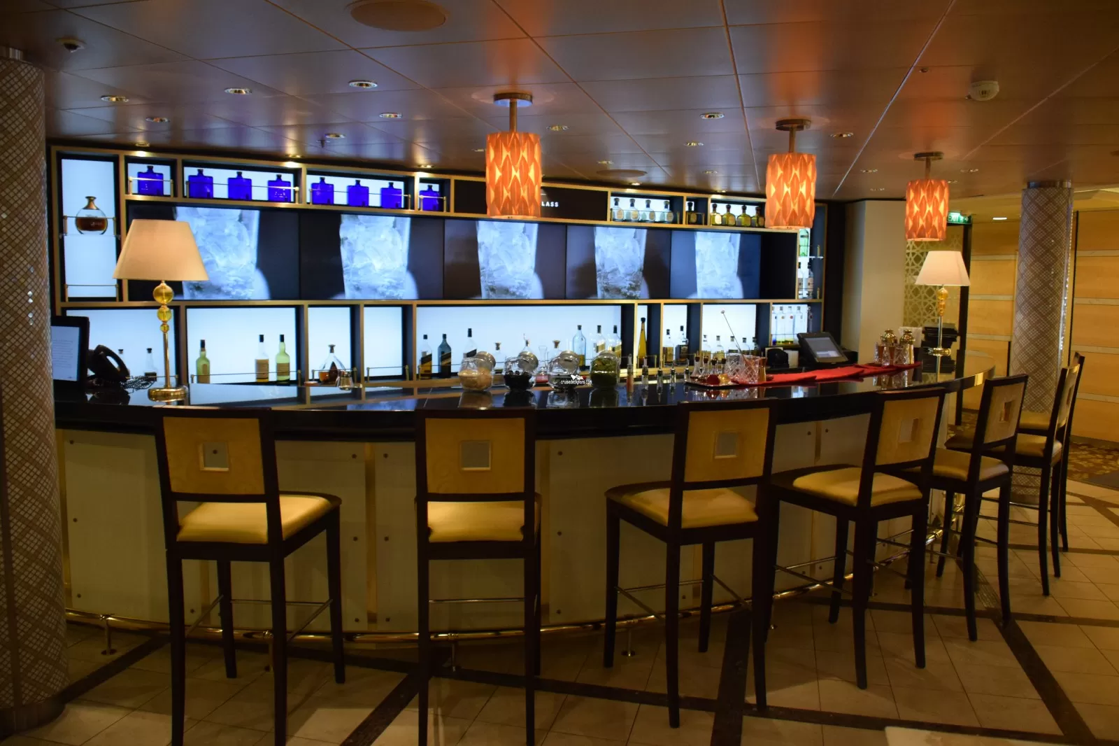 The gateway to the ship's four specialty restaurants with its "dressed for dinner" gathering, is the ideal place for a drink before or after dining featuring live musical entertainment.Murano