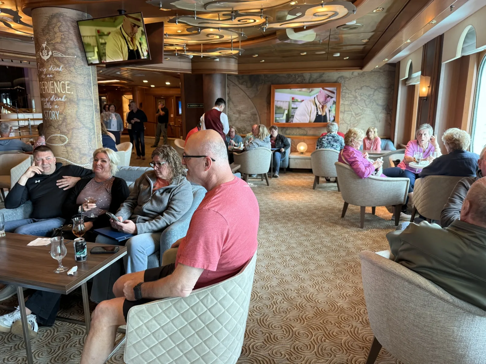 Ships atrium. On first level is passenger services, shore excursions, future cruise sales, circle desk (loyalty desk), and a lounge area.Guest Services