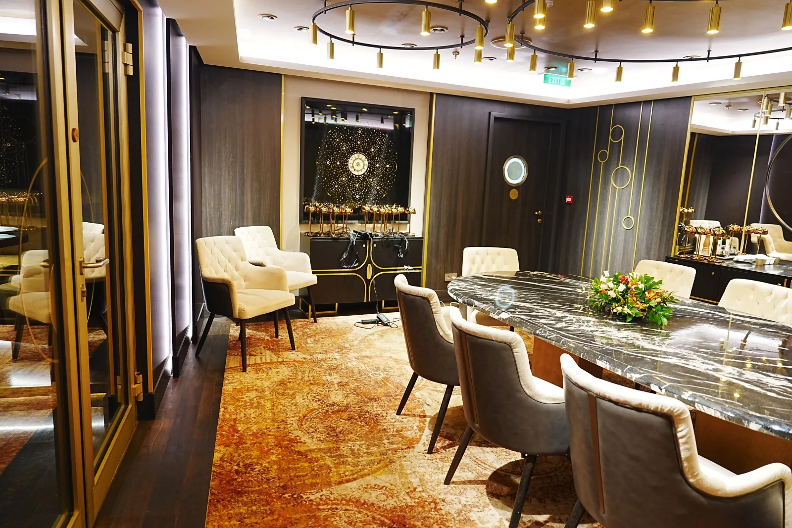 Adult exclusive lounge serving cocktails. Inspired by the enchanted castle from Beauty and the Beast. Featurs antique mirrors and rose petals.Vibe