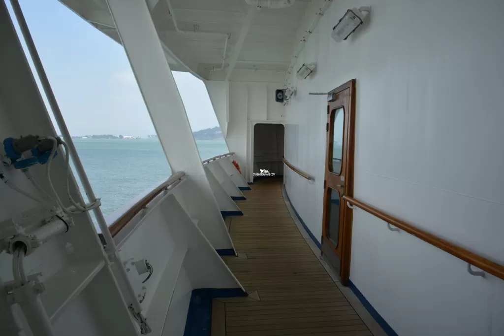 Outside promenade deck that circles around the ship. It is narrow in spots and in the front of the ship you need to climb steep stairs up to Emerald deck.The Piazza