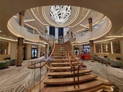 Atrium that is 2 deck high and features a grand staircase. The Lobby level has the ship's entrances.Manager Office