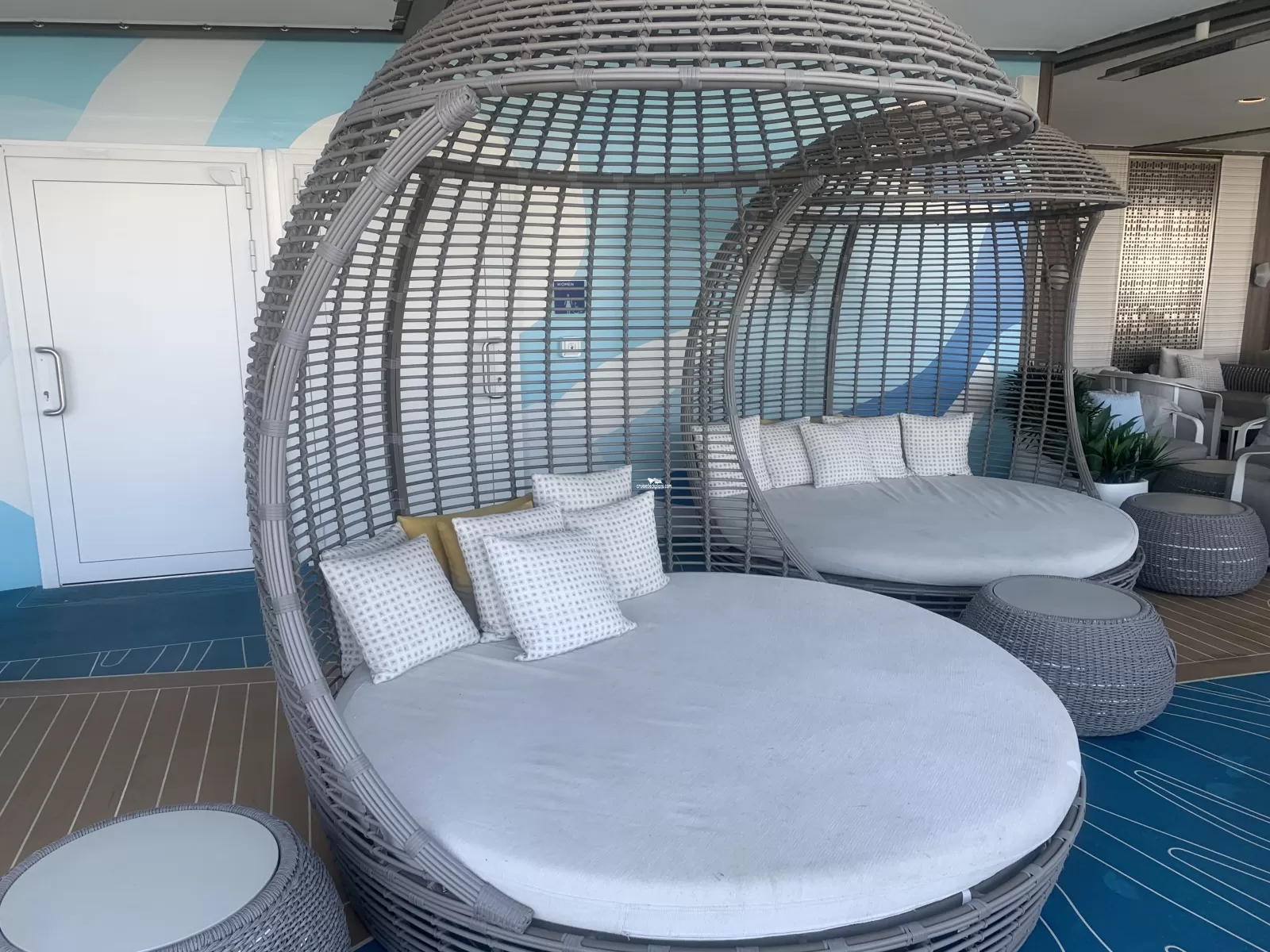 An exclusive area that gives suites guests/gold SeaPass card holders the chance to soak-up and relax in the sun with lounge furniture, shaded seating areas and private service.Waterslides