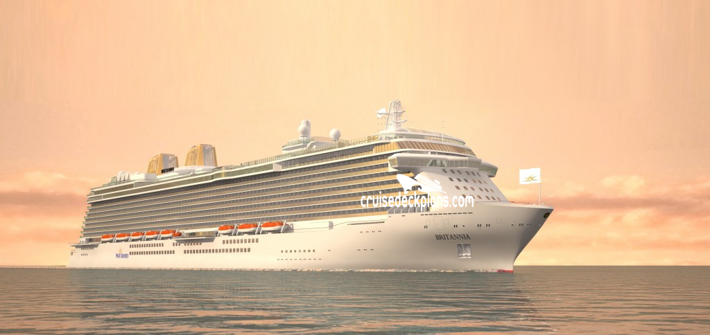On this page you will find pictures of Britannia cruise ship. Cruisedeckplans.com also provides links to our own pages filled with Britannia public area venue pictures. On all our albums you can click on the picture for a larger image and slideshow. We thank the thousands of contributors for the photos.