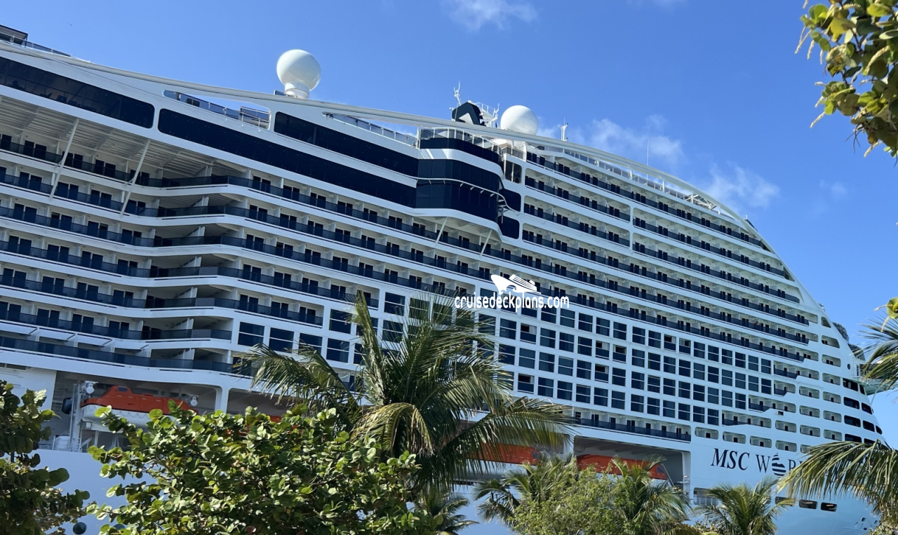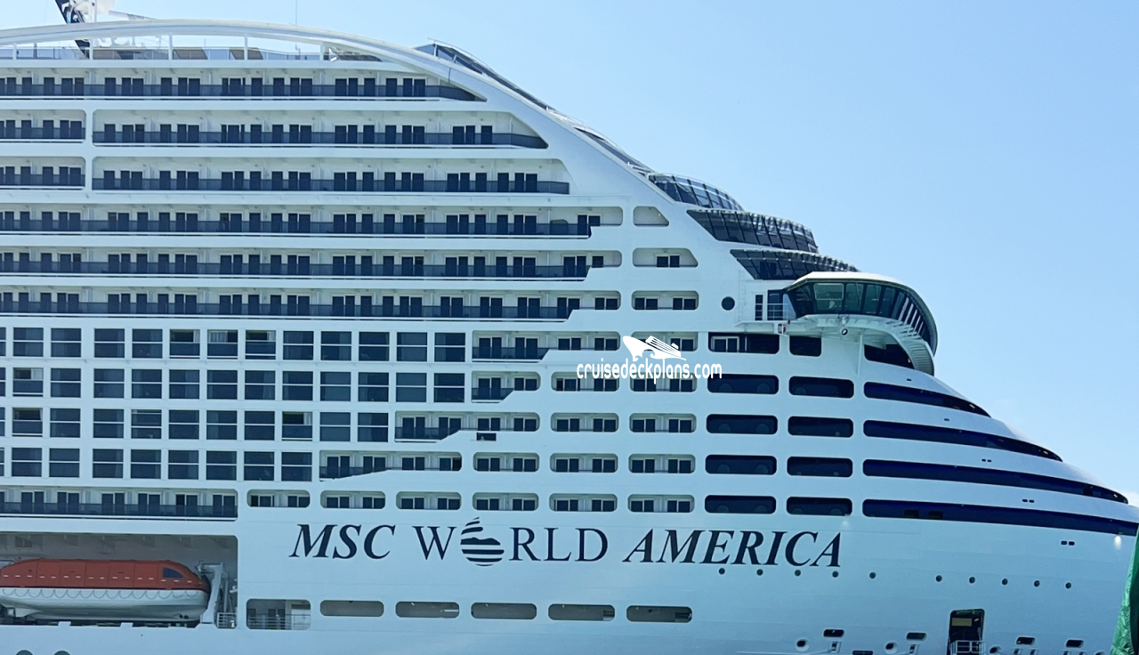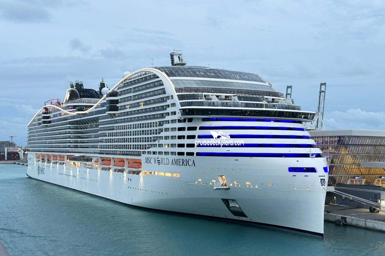 On this page you will find pictures of MSC World America cruise ship. Cruisedeckplans.com also provides links to our own pages filled with MSC World America public area venue pictures. On all our albums you can click on the picture for a larger image and slideshow. We thank the thousands of contributors for the photos.