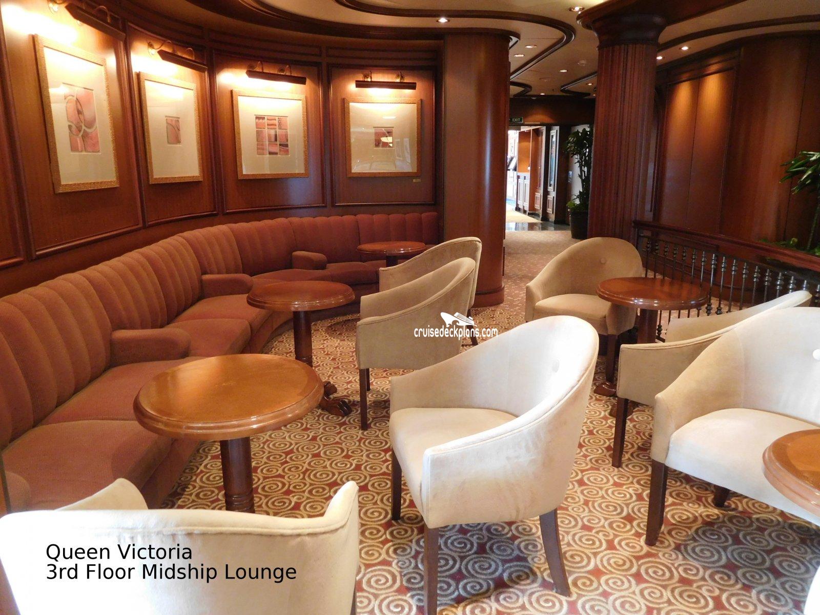 Queen Victoria Midship Lounge is located on Deck 3 (deck). We have provided the deck plan image for your reference.