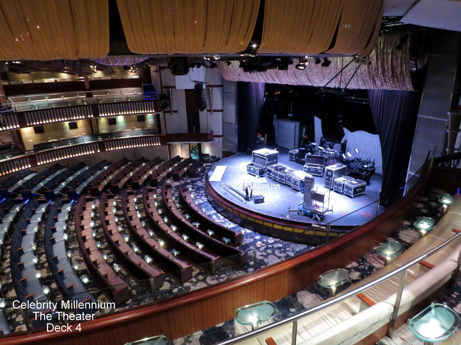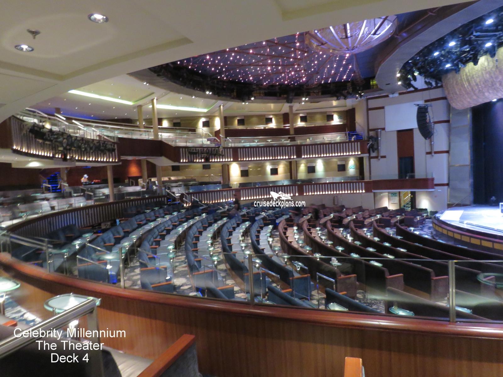 This page shows actual pictures for Celebrity Millennium Celebrity Theater. Most of our pictures are contributed by actual cruisers. You will find that all the Celebrity Millennium Celebrity Theater pictures on this page also posted directly onto our deck plans near the actual location the photo was taken. You can browse the pictures here or you can click on them as you are viewing the Celebrity Millennium deck plans. For deck plan viewing click on the ship button above or scroll down to view the pictures on this page.