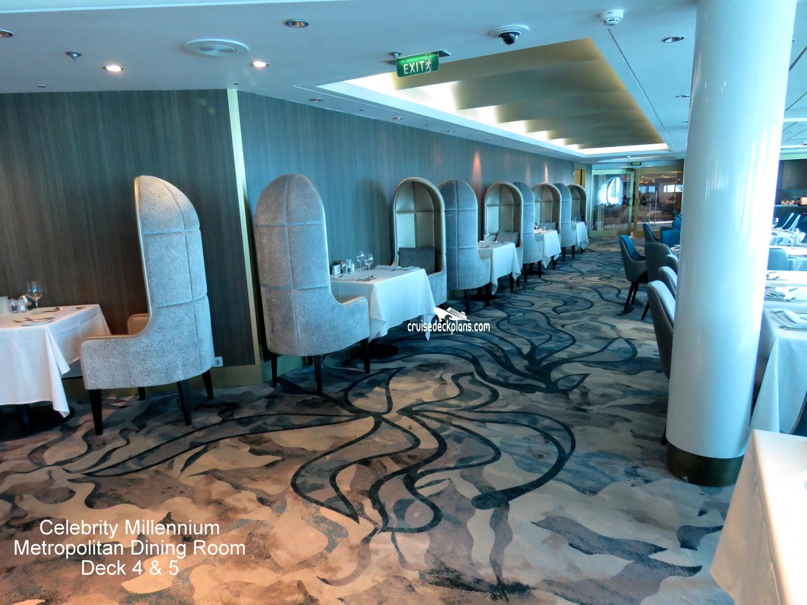 Celebrity Millennium Metropolitan Restaurant is located on Promenade (deck). We have provided the deck plan image for your reference.
