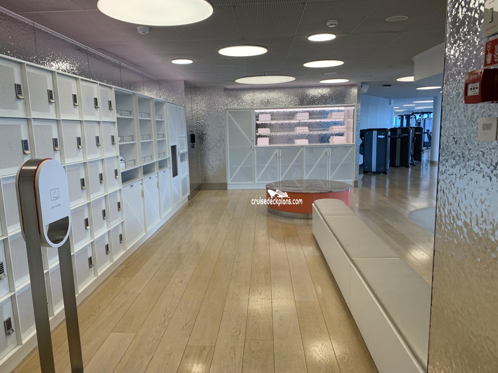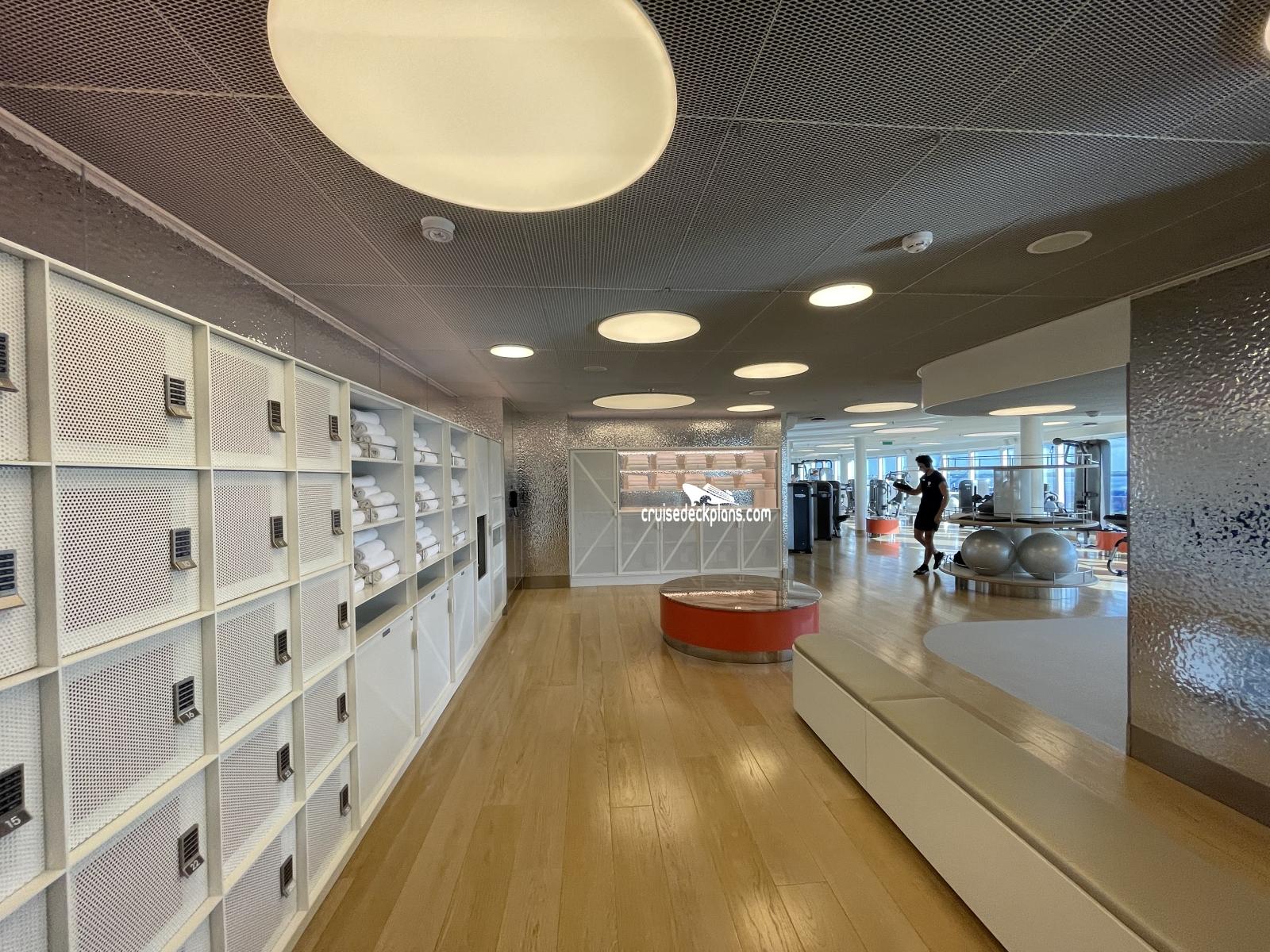 Fitness Area. On port side is Burn and Bike Gym with focus on a Bike Studio. On the starboard side is Build and Balance Gym with a focus on Balance Studio.