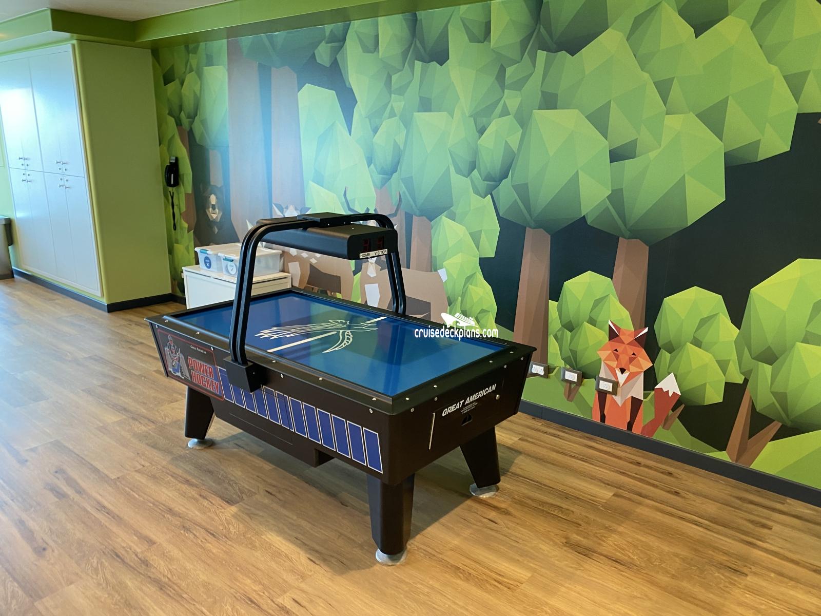 For children aged 3 to 7 with activities ranging from arts and crafts, disco nights, movies, talent shows and educational workshops (providing interactive scientific activities and information on endangered species in the areas visited) to pyjama parties and pizza and ice cream parties. The children's club is supervised by experienced staff with lunch provided upon request during port days. Open from 9am-12pm, 1pm-5pm and 6pm-1am on sea days and 8am to 5pm on port days, a $5 per child charge for kid sitting is applicable from 10pm to 1am for children aged 3 to 12.