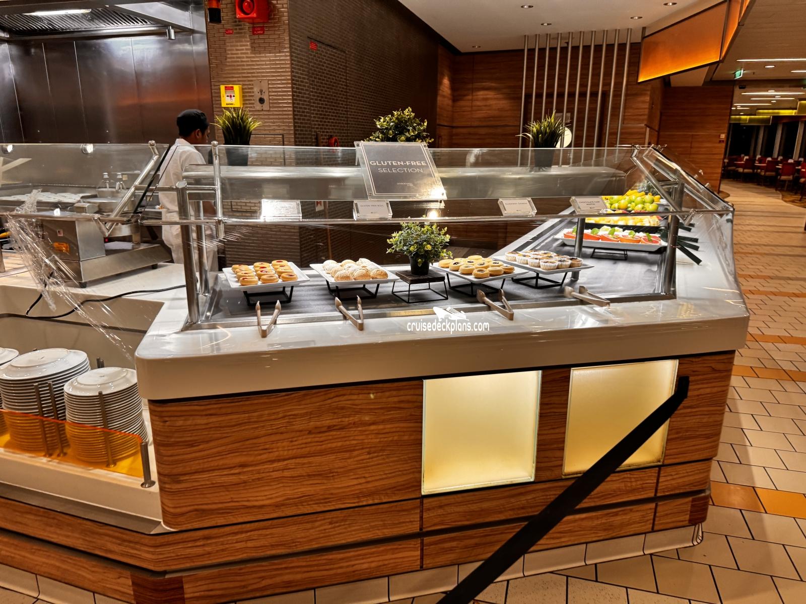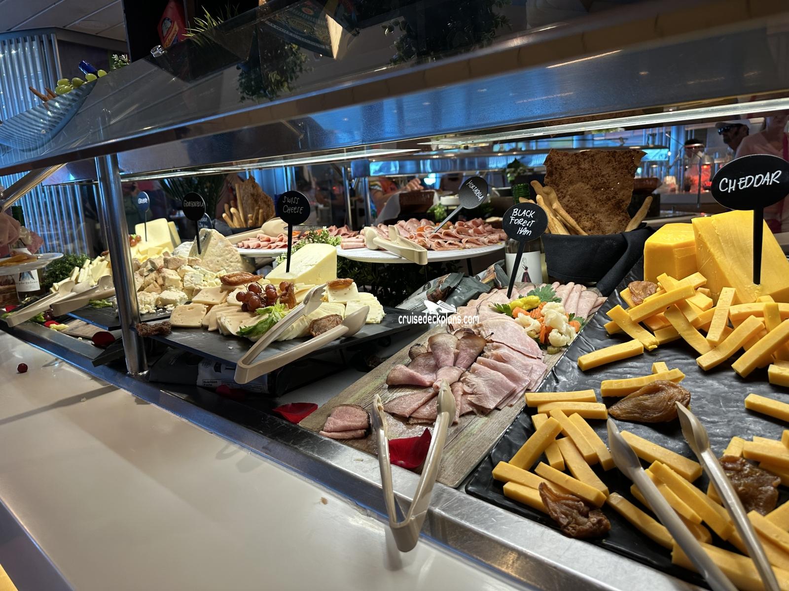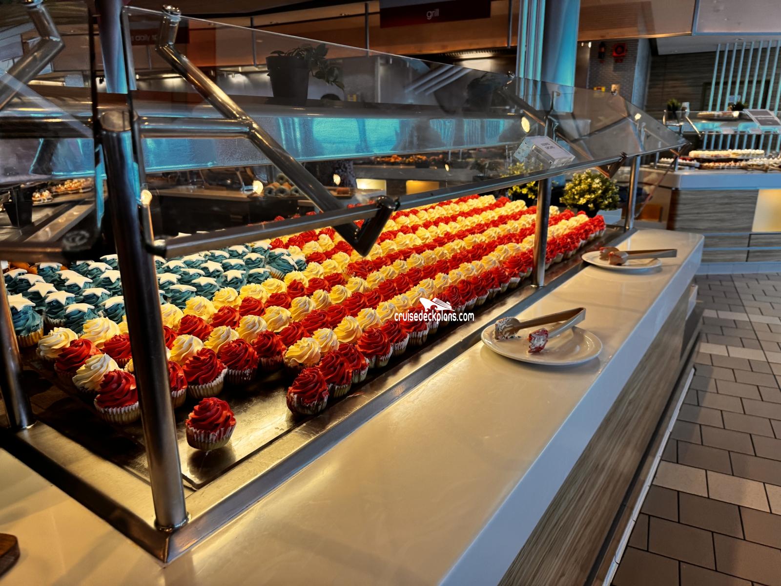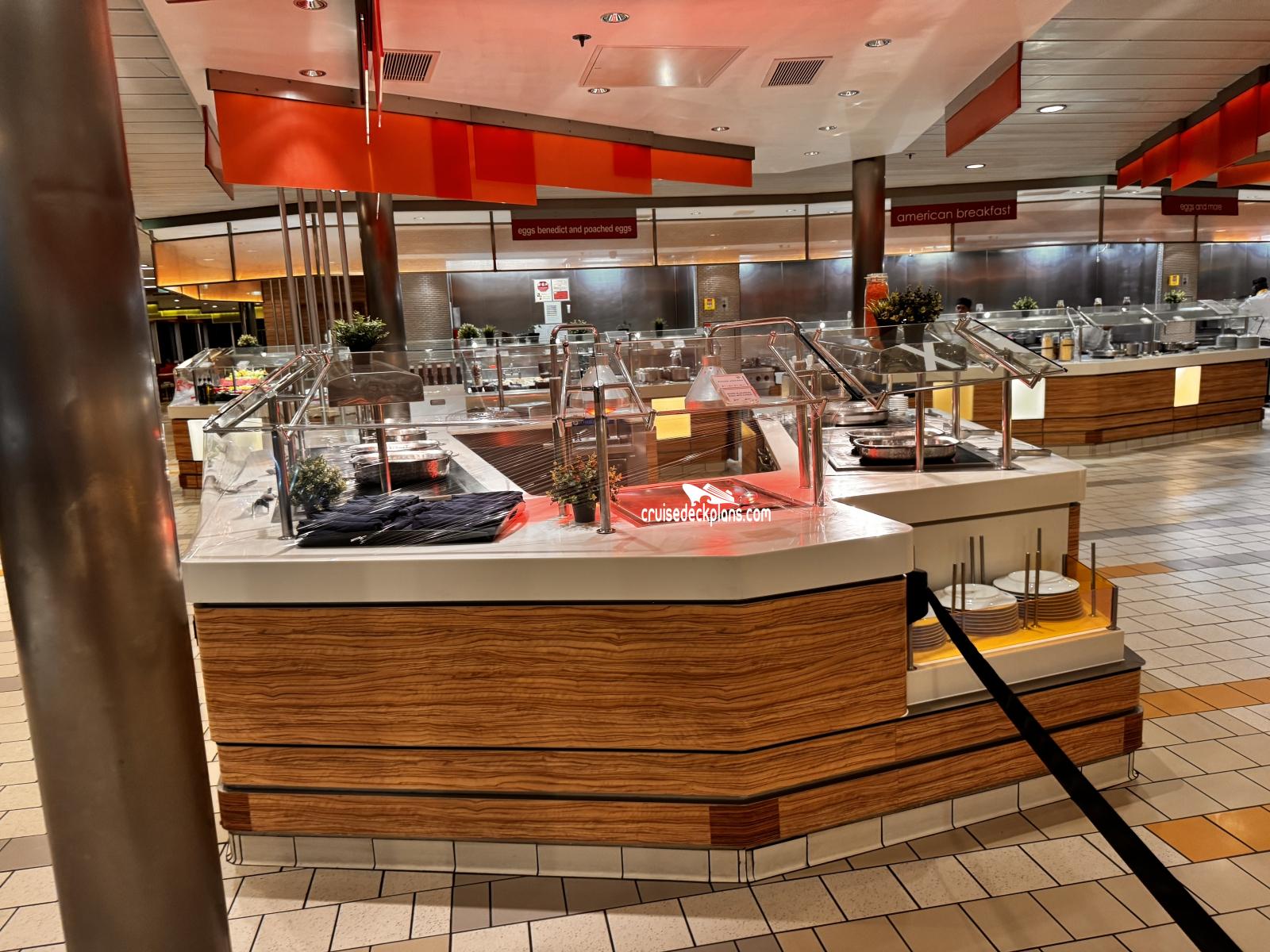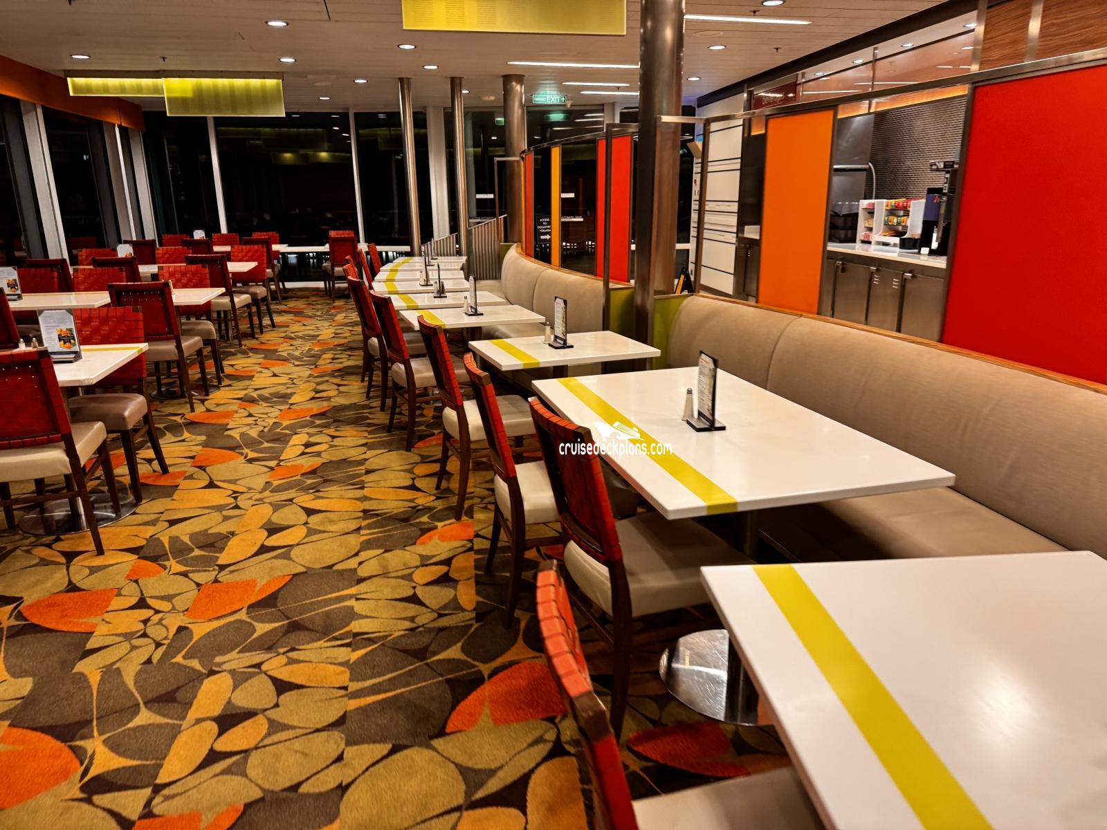 The ship's international buffet style marketplace that features a menu inspired by multiple cultures. Seats 885 people with both indoor and outdoor seating.