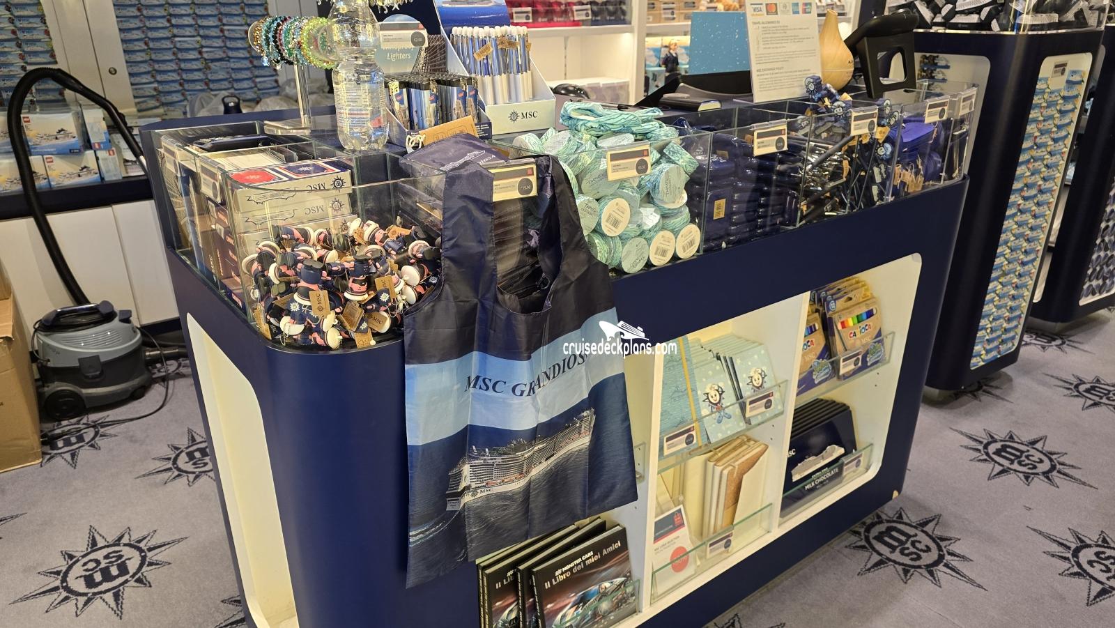 This page shows actual pictures for MSC Grandiosa MSC Shop. Most of our pictures are contributed by actual cruisers. You will find that all the MSC Grandiosa MSC Shop pictures on this page also posted directly onto our deck plans near the actual location the photo was taken. You can browse the pictures here or you can click on them as you are viewing the MSC Grandiosa deck plans. For deck plan viewing click on the ship button above or scroll down to view the pictures on this page.