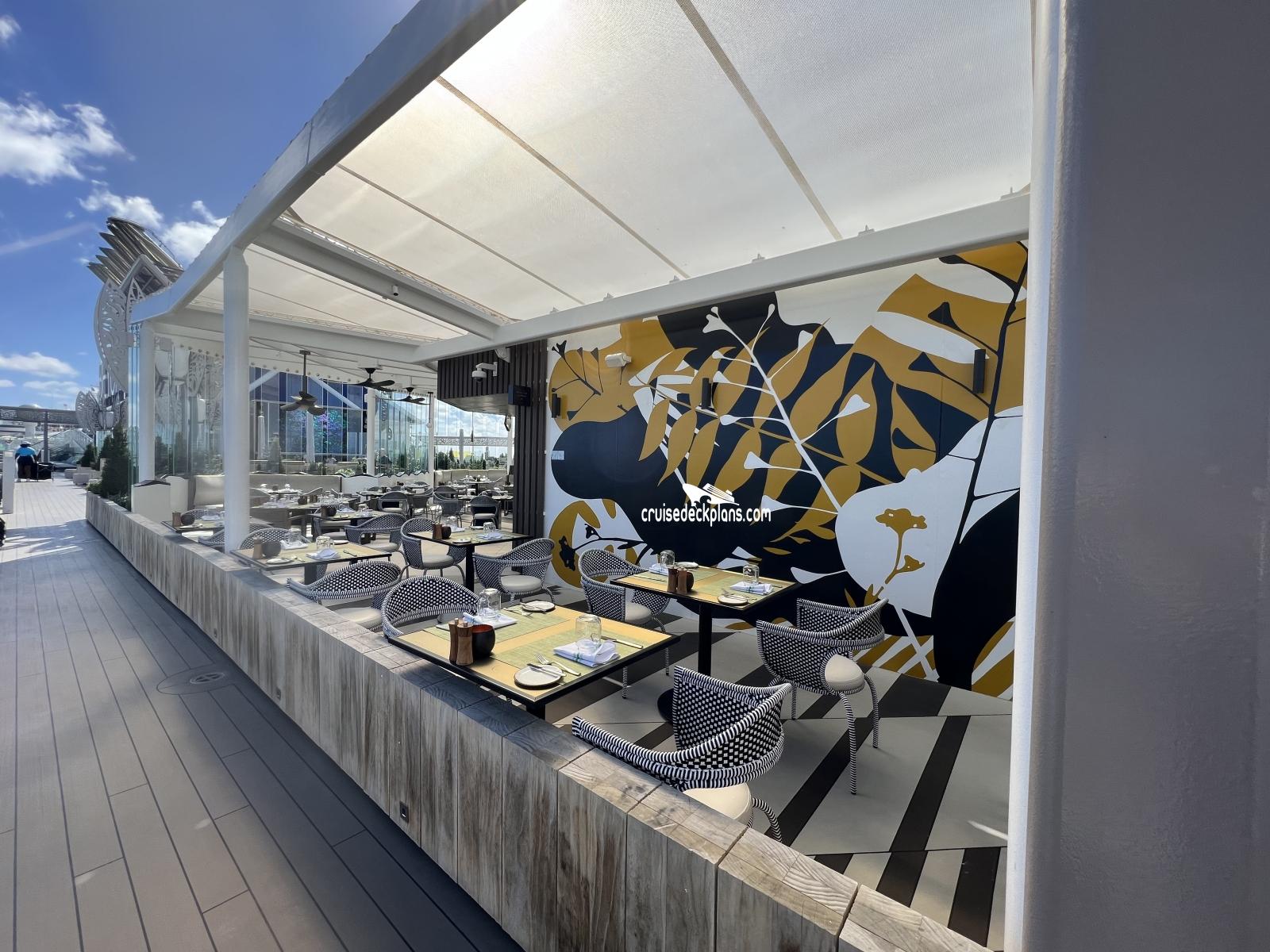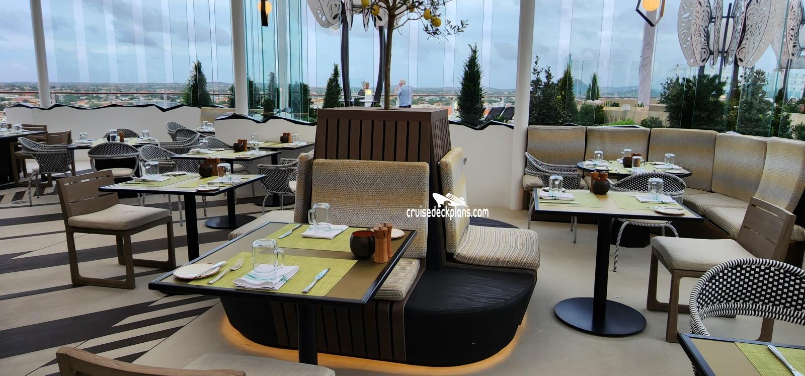 This page shows actual pictures for Celebrity Beyond Rooftop Garden Grill. Most of our pictures are contributed by actual cruisers. You will find that all the Celebrity Beyond Rooftop Garden Grill pictures on this page also posted directly onto our deck plans near the actual location the photo was taken. You can browse the pictures here or you can click on them as you are viewing the Celebrity Beyond deck plans. For deck plan viewing click on the ship button above or scroll down to view the pictures on this page.