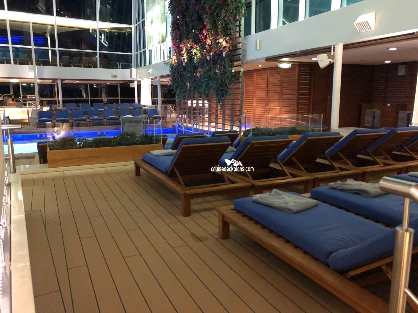 This page shows actual pictures for Celebrity Solstice Solarium. Most of our pictures are contributed by actual cruisers. You will find that all the Celebrity Solstice Solarium pictures on this page also posted directly onto our deck plans near the actual location the photo was taken. You can browse the pictures here or you can click on them as you are viewing the Celebrity Solstice deck plans. For deck plan viewing click on the ship button above or scroll down to view the pictures on this page.