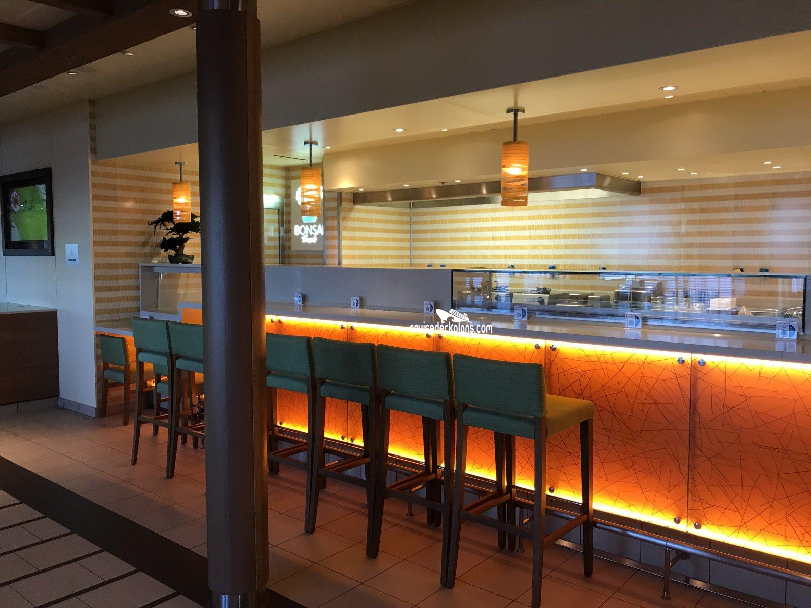 This page shows actual pictures for Carnival Radiance Bonsai Sushi. Most of our pictures are contributed by actual cruisers. You will find that all the Carnival Radiance Bonsai Sushi pictures on this page also posted directly onto our deck plans near the actual location the photo was taken. You can browse the pictures here or you can click on them as you are viewing the Carnival Radiance deck plans. For deck plan viewing click on the ship button above or scroll down to view the pictures on this page.
