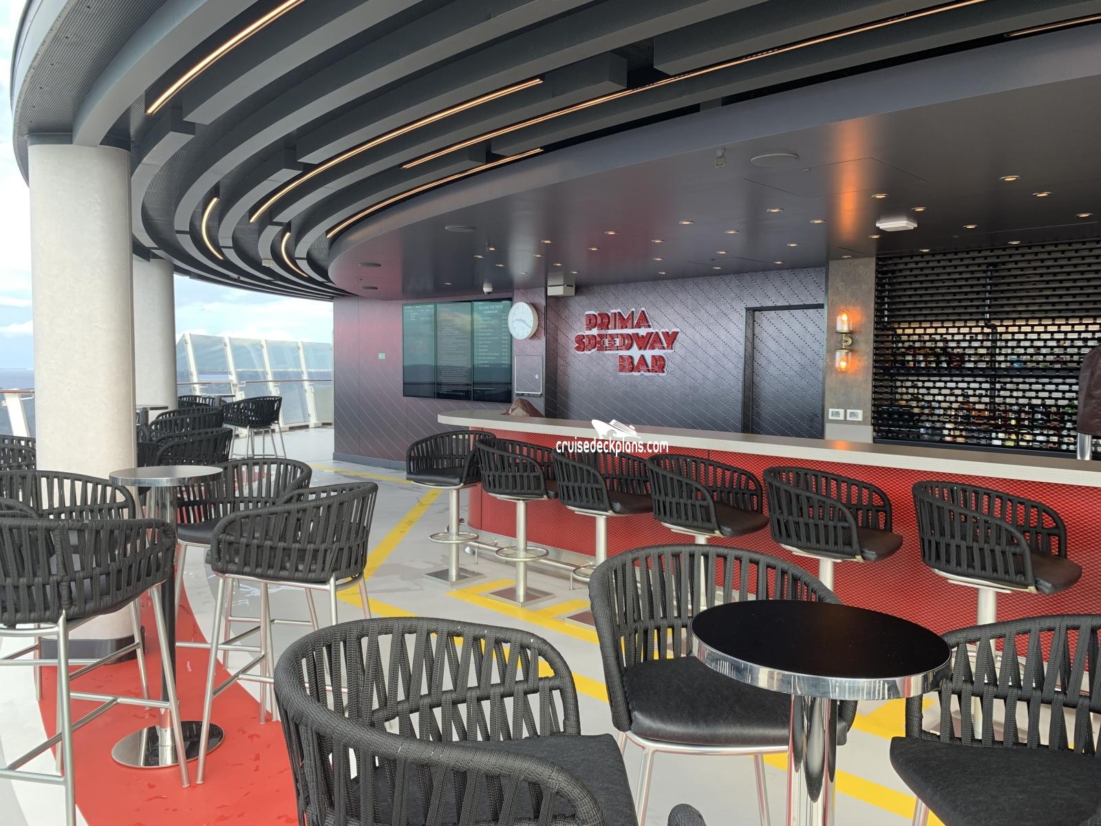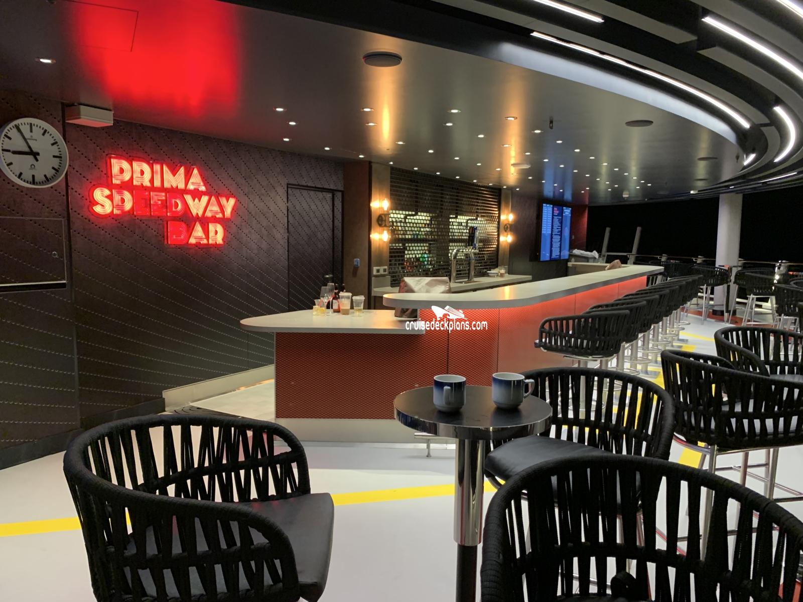Norwegian Prima Speedway Bar is located on Deck 18 (deck). We have provided the deck plan image for your reference.