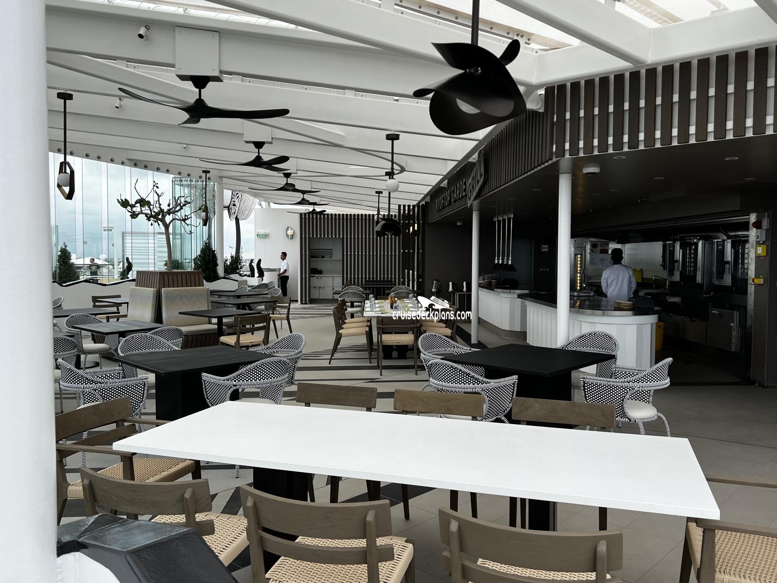 This page shows actual pictures for Celebrity Ascent Rooftop Garden Grill. Most of our pictures are contributed by actual cruisers. You will find that all the Celebrity Ascent Rooftop Garden Grill pictures on this page also posted directly onto our deck plans near the actual location the photo was taken. You can browse the pictures here or you can click on them as you are viewing the Celebrity Ascent deck plans. For deck plan viewing click on the ship button above or scroll down to view the pictures on this page.