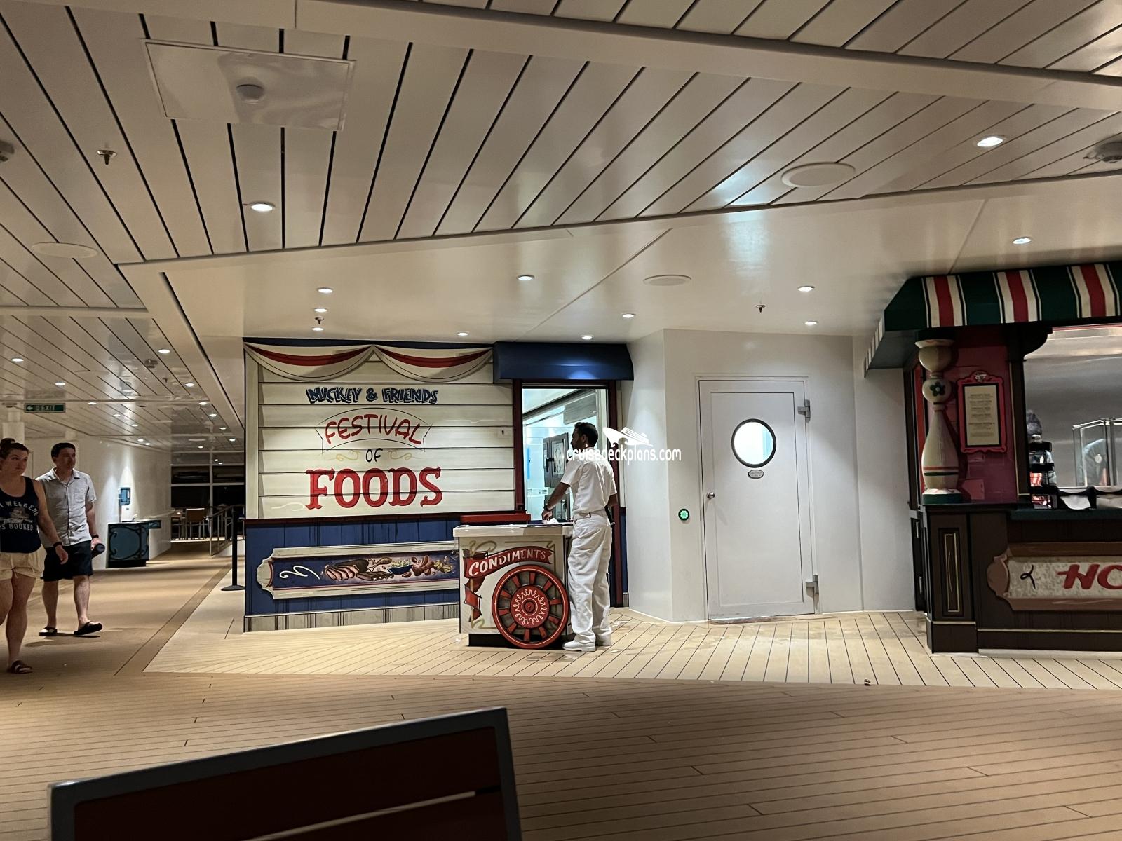 This page shows actual pictures for Disney Wish Festival of Foods. Most of our pictures are contributed by actual cruisers. You will find that all the Disney Wish Festival of Foods pictures on this page also posted directly onto our deck plans near the actual location the photo was taken. You can browse the pictures here or you can click on them as you are viewing the Disney Wish deck plans. For deck plan viewing click on the ship button above or scroll down to view the pictures on this page.