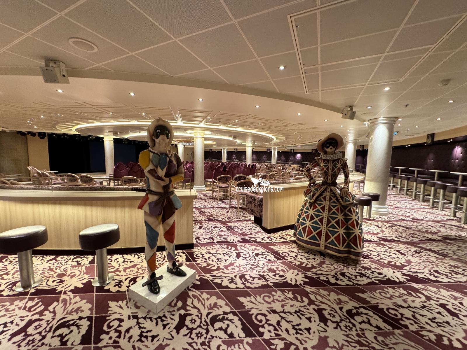 This page shows actual pictures for Carnival Venezia Limelight Lounge. Most of our pictures are contributed by actual cruisers. You will find that all the Carnival Venezia Limelight Lounge pictures on this page also posted directly onto our deck plans near the actual location the photo was taken. You can browse the pictures here or you can click on them as you are viewing the Carnival Venezia deck plans. For deck plan viewing click on the ship button above or scroll down to view the pictures on this page.