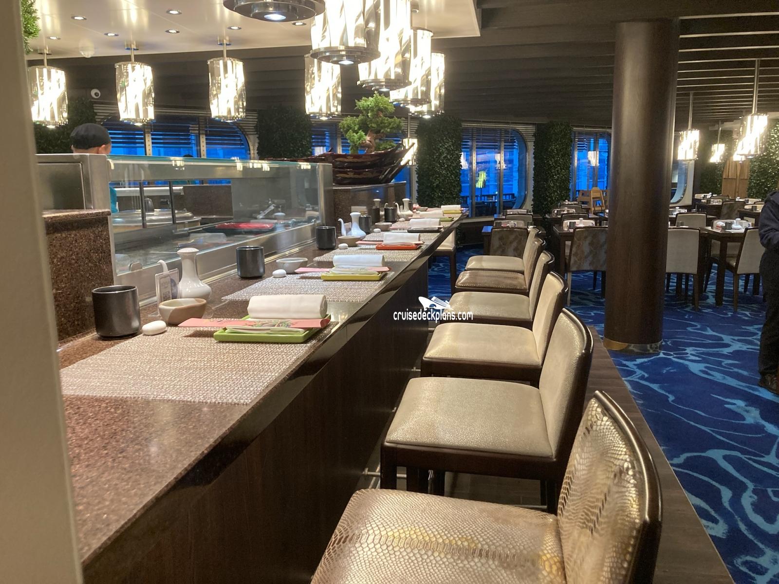 This page shows actual pictures for Carnival Venezia Bonsai Sushi. Most of our pictures are contributed by actual cruisers. You will find that all the Carnival Venezia Bonsai Sushi pictures on this page also posted directly onto our deck plans near the actual location the photo was taken. You can browse the pictures here or you can click on them as you are viewing the Carnival Venezia deck plans. For deck plan viewing click on the ship button above or scroll down to view the pictures on this page.