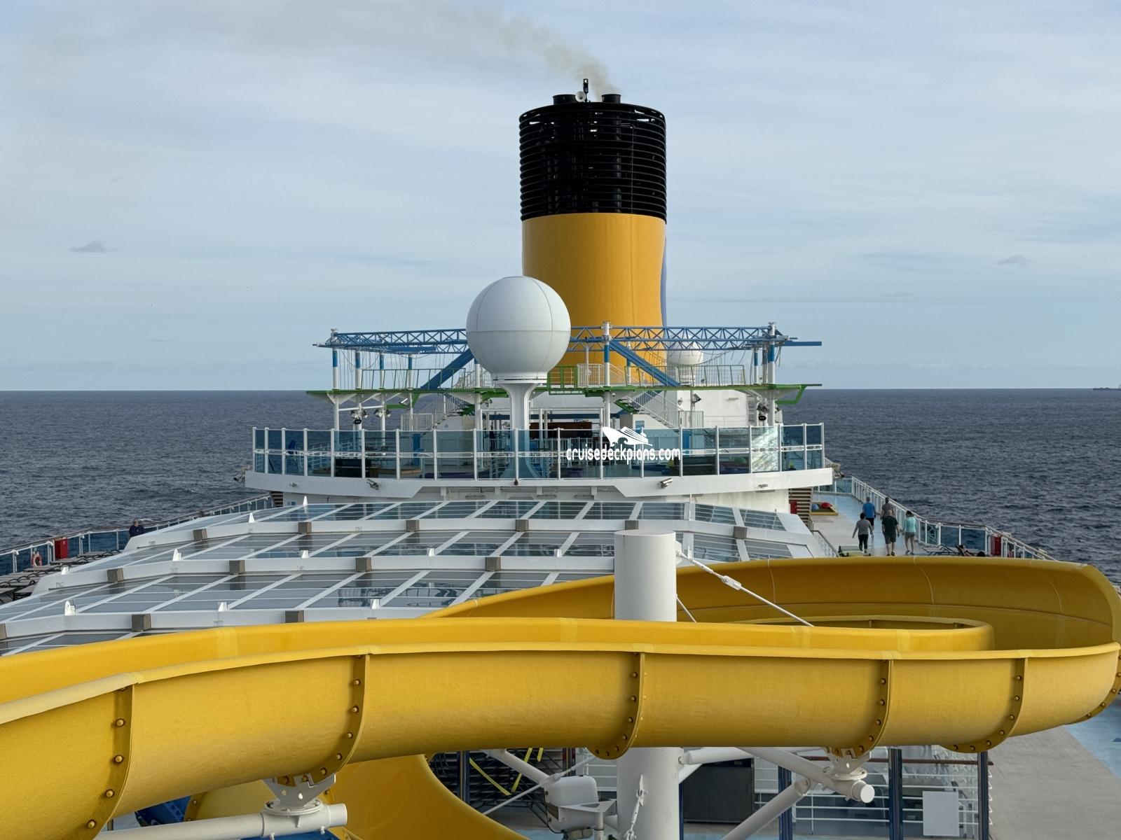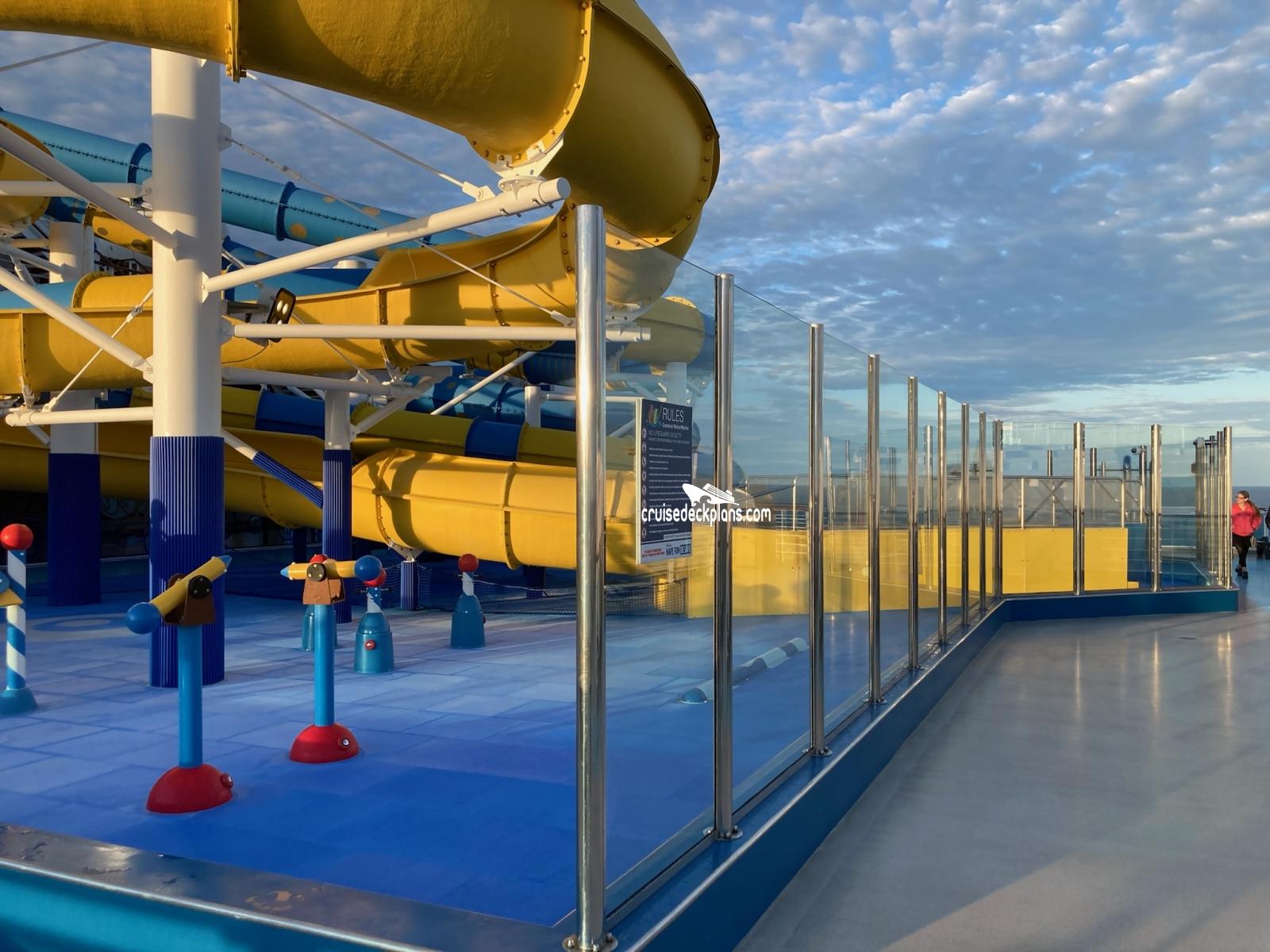 Featurs water slide starting at deck 15. Hours: 9:00am-7:00pm, weather conditions permitting / hours subject to change