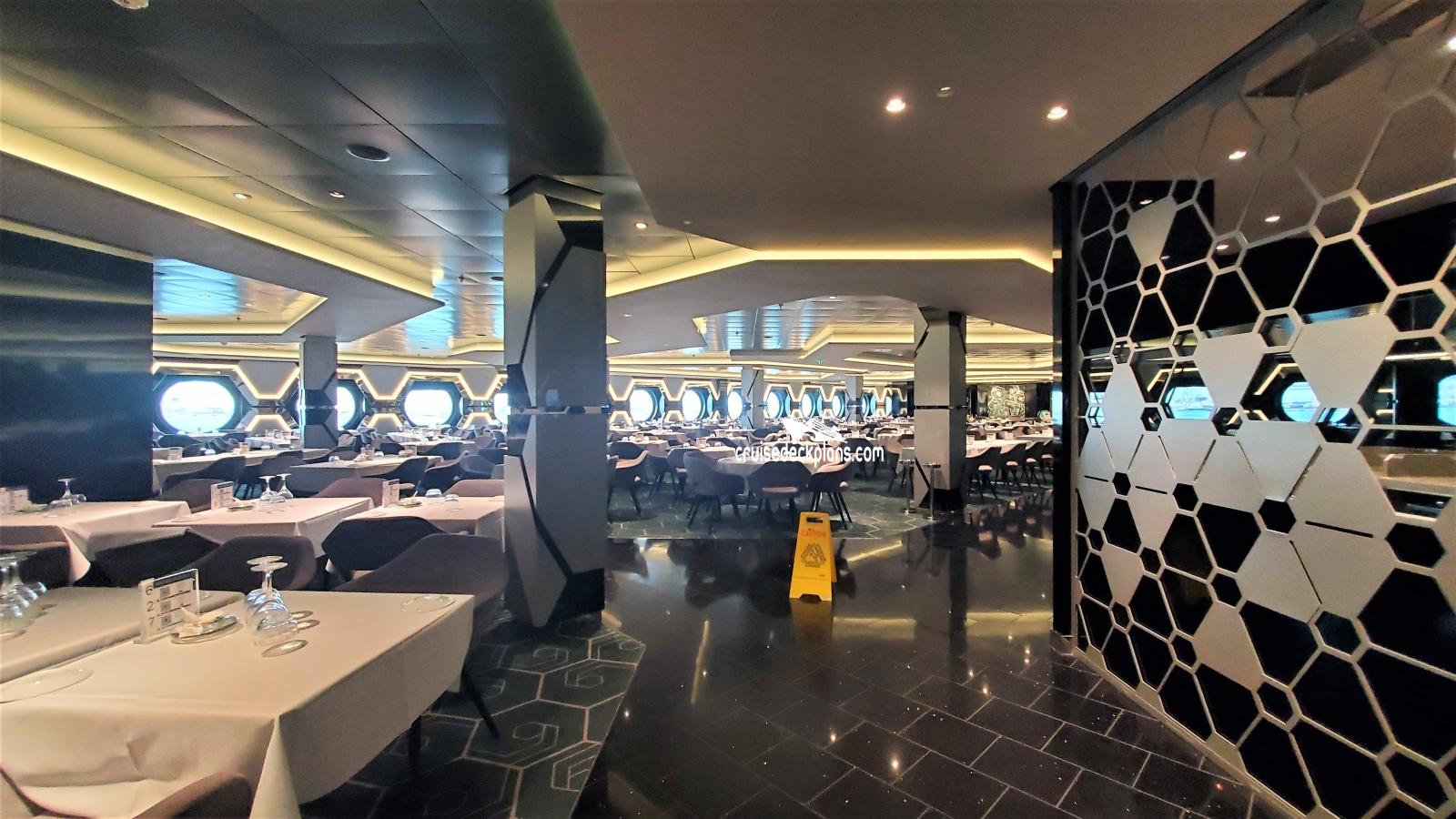 This page shows actual pictures for MSC World Europa Hexagon Restaurant. Most of our pictures are contributed by actual cruisers. You will find that all the MSC World Europa Hexagon Restaurant pictures on this page also posted directly onto our deck plans near the actual location the photo was taken. You can browse the pictures here or you can click on them as you are viewing the MSC World Europa deck plans. For deck plan viewing click on the ship button above or scroll down to view the pictures on this page.