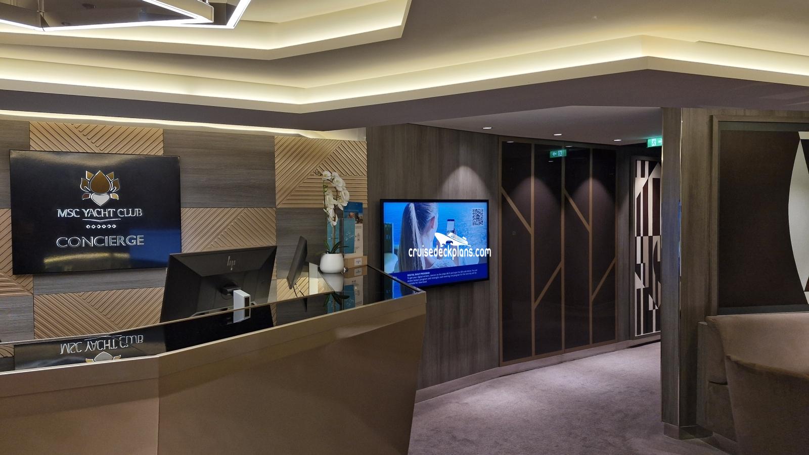 MSC World Europa Yacht Club Concierge is located on Deck 19 (deck). We have provided the deck plan image for your reference.