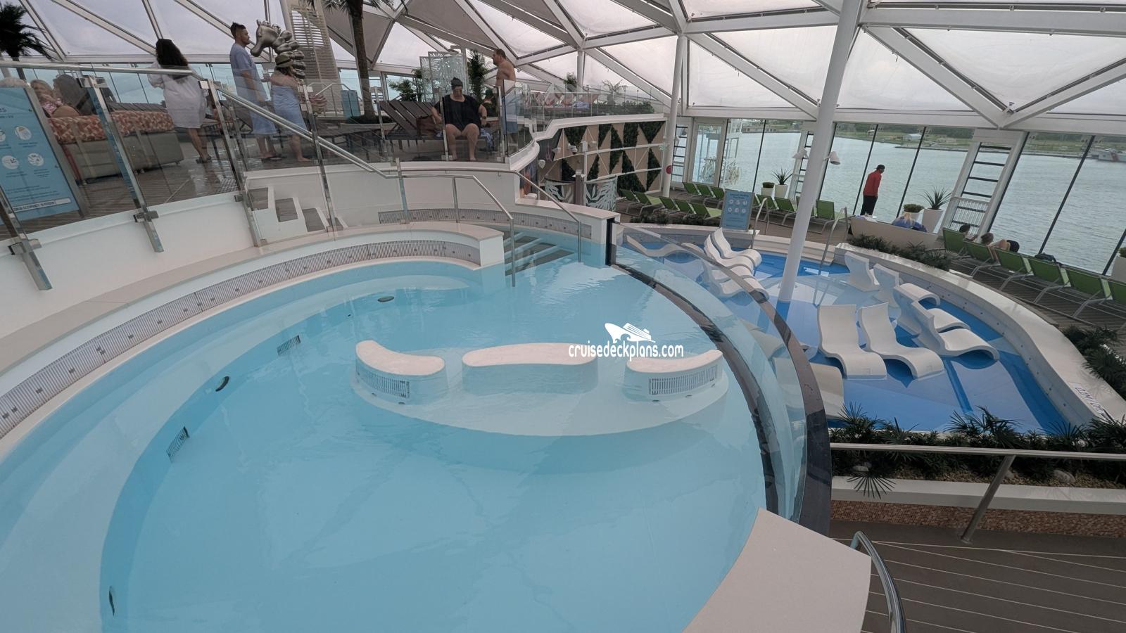 This page shows actual pictures for Utopia of the Seas Solarium. Most of our pictures are contributed by actual cruisers. You will find that all the Utopia of the Seas Solarium pictures on this page also posted directly onto our deck plans near the actual location the photo was taken. You can browse the pictures here or you can click on them as you are viewing the Utopia of the Seas deck plans. For deck plan viewing click on the ship button above or scroll down to view the pictures on this page.