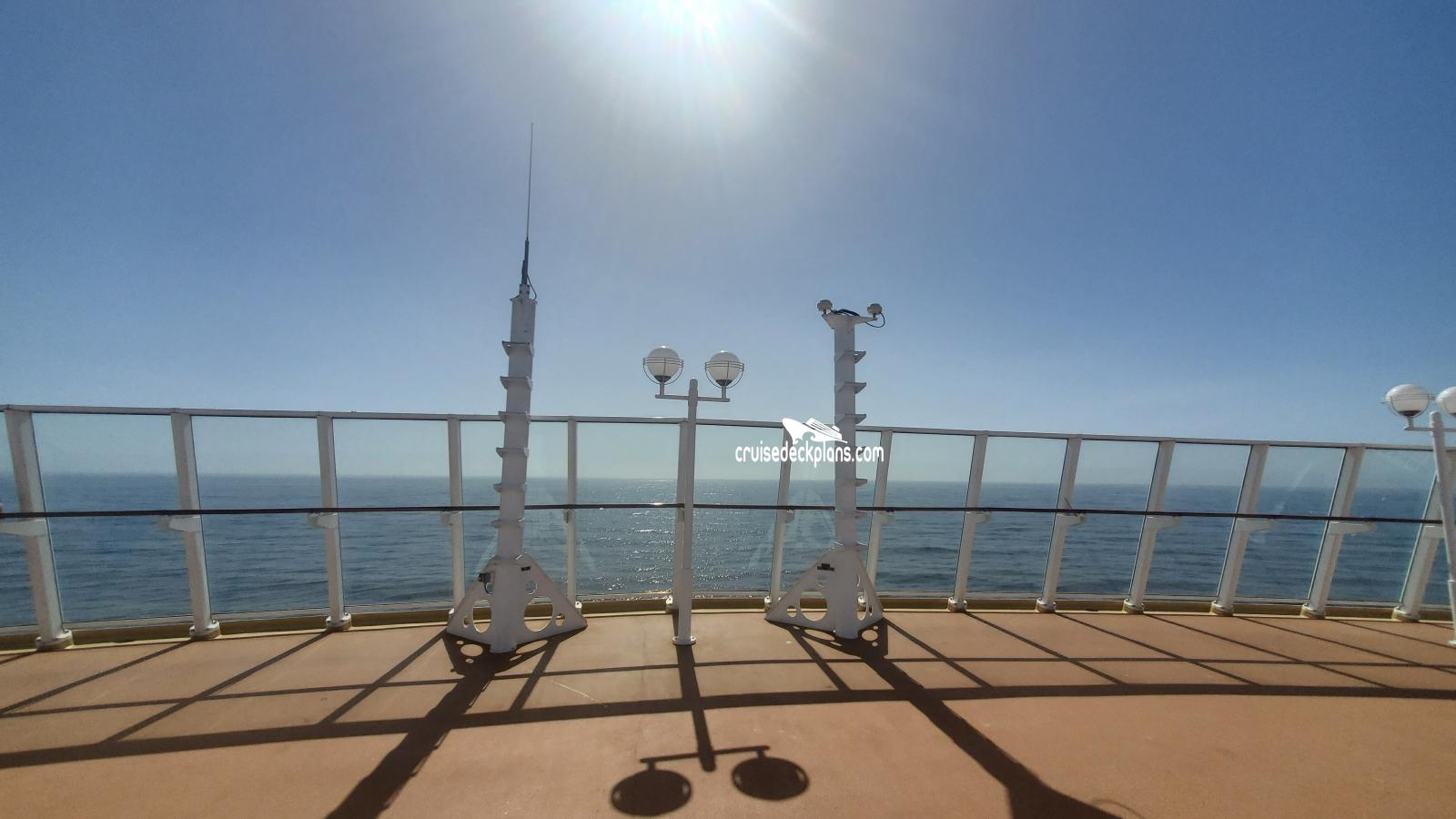 Extra deck space on top forward part of the ship with views and loungers. The part of the deck overlooking the pool area is now reserved for those with Vibe Beach Club passes.