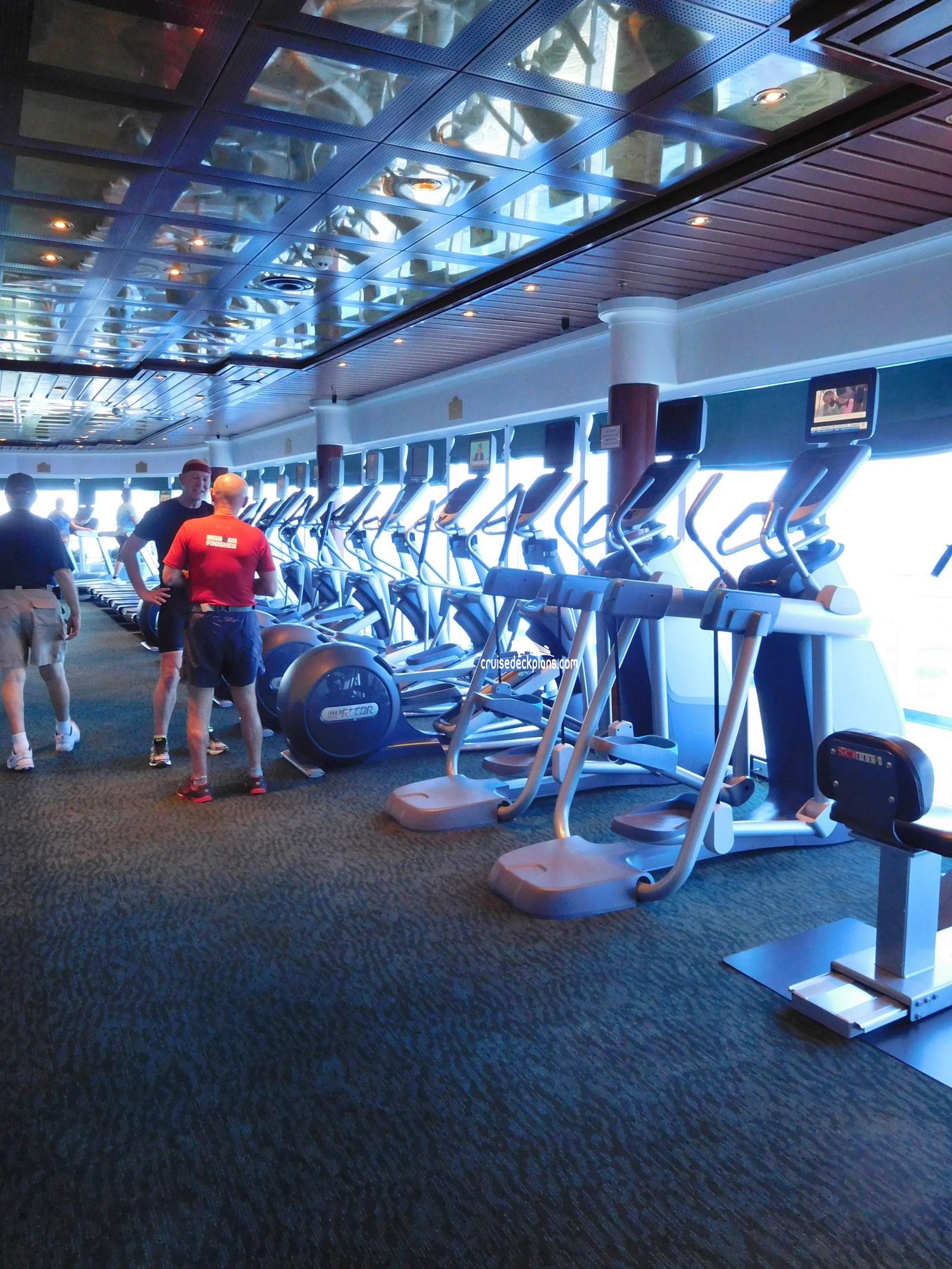 This page shows actual pictures for Coral Princess The Gym. Most of our pictures are contributed by actual cruisers. You will find that all the Coral Princess The Gym pictures on this page also posted directly onto our deck plans near the actual location the photo was taken. You can browse the pictures here or you can click on them as you are viewing the Coral Princess deck plans. For deck plan viewing click on the ship button above or scroll down to view the pictures on this page.