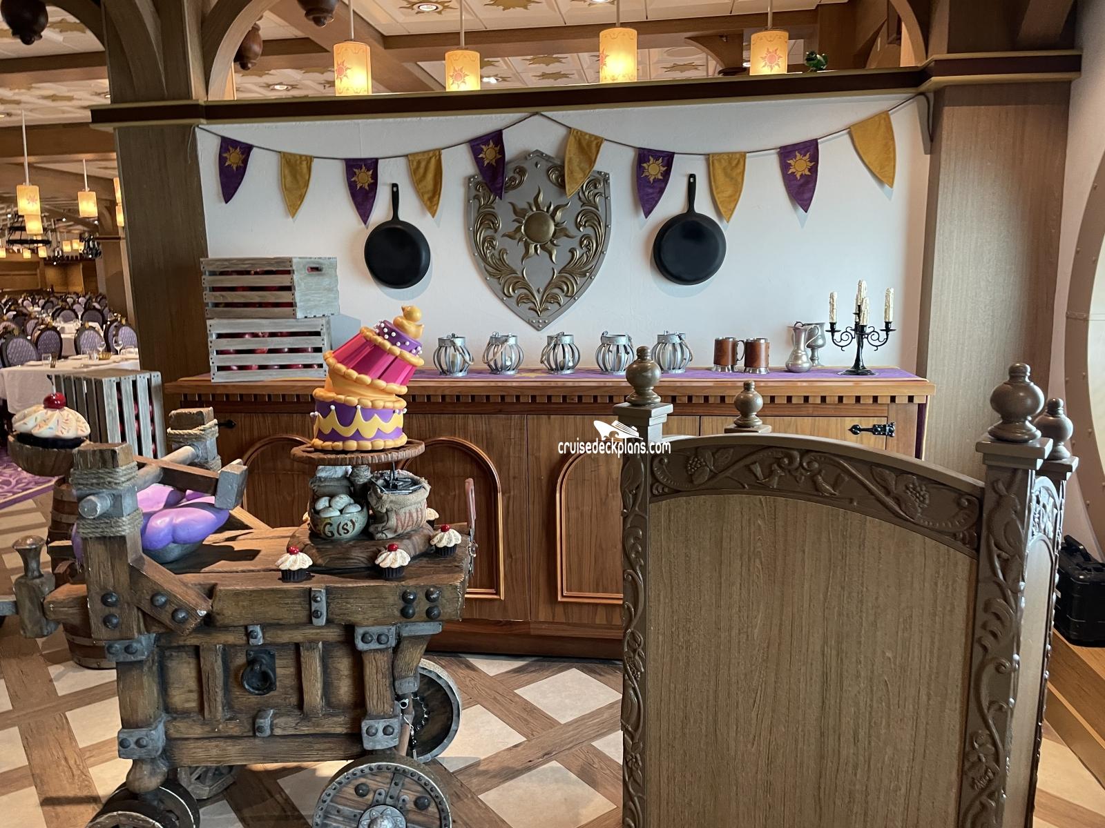 This page shows actual pictures for Disney Magic Rapunzels Royal Table. Most of our pictures are contributed by actual cruisers. You will find that all the Disney Magic Rapunzels Royal Table pictures on this page also posted directly onto our deck plans near the actual location the photo was taken. You can browse the pictures here or you can click on them as you are viewing the Disney Magic deck plans. For deck plan viewing click on the ship button above or scroll down to view the pictures on this page.