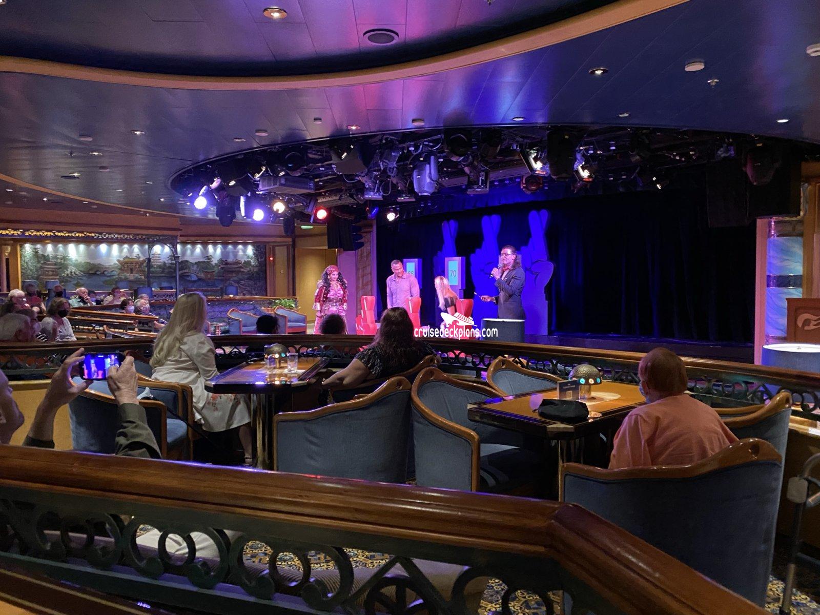 This page shows actual pictures for Emerald Princess Explorers Lounge. Most of our pictures are contributed by actual cruisers. You will find that all the Emerald Princess Explorers Lounge pictures on this page also posted directly onto our deck plans near the actual location the photo was taken. You can browse the pictures here or you can click on them as you are viewing the Emerald Princess deck plans. For deck plan viewing click on the ship button above or scroll down to view the pictures on this page.