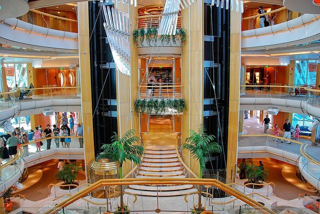A seven-story atrium surrounded by bars, lounges and shops and acts as an entertainment venue with activities, parties and other events including 70's song tributes, a 70's disco inferno party and Dance Music.