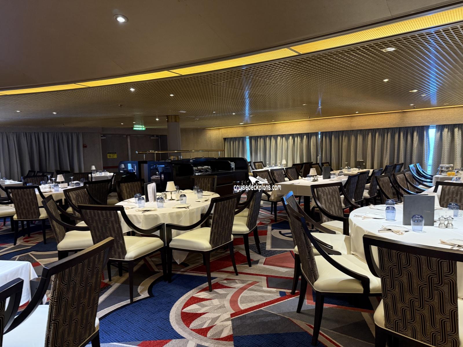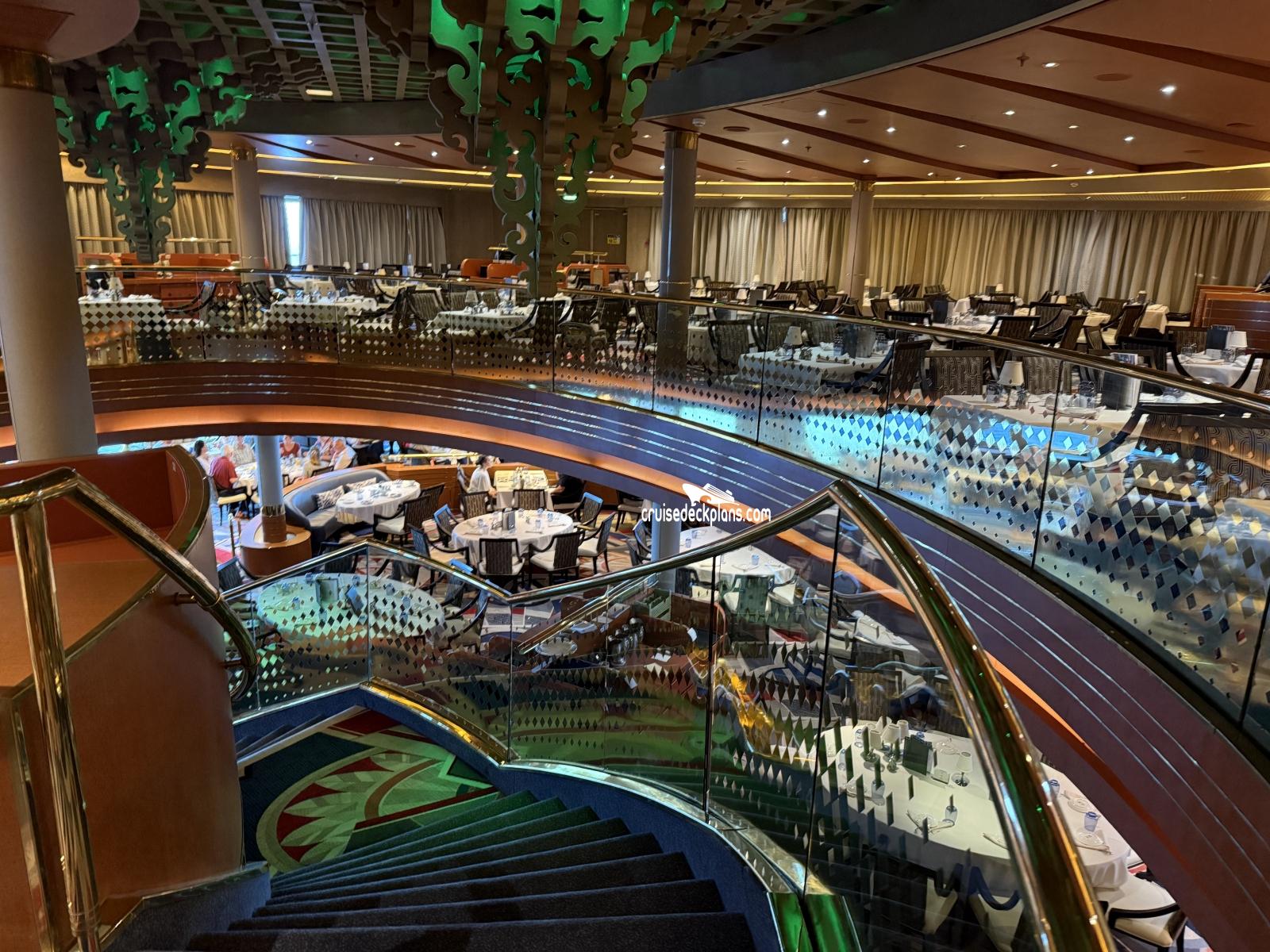 the main dining room onboard, that features both open and fixed seatings for dinner, whilst breakfast and dinner are open seating.