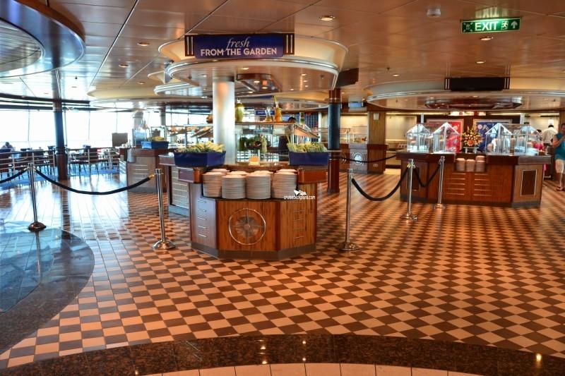 The ship's buffet restaurant that is open for breakfast, lunch, and dinner.