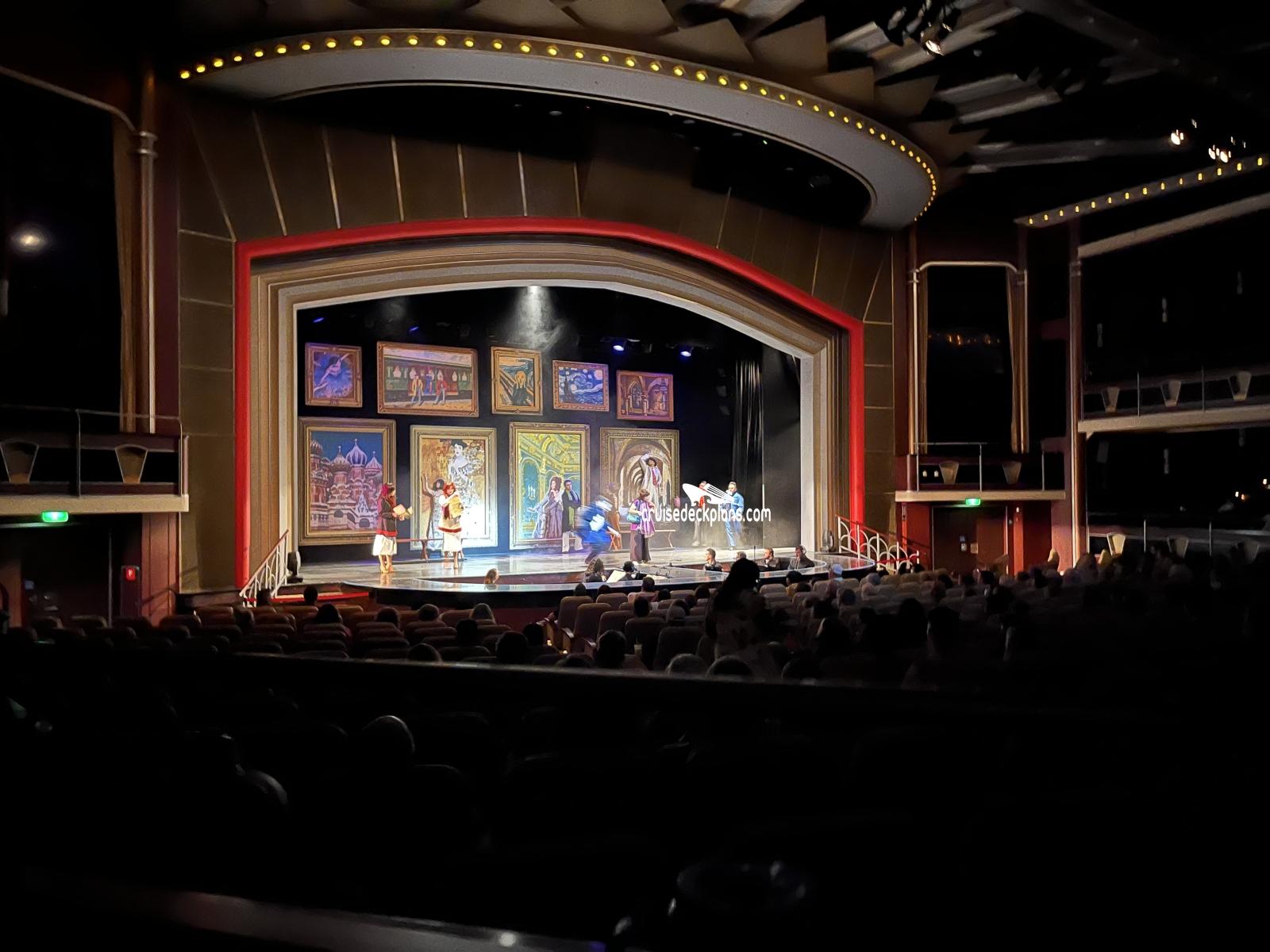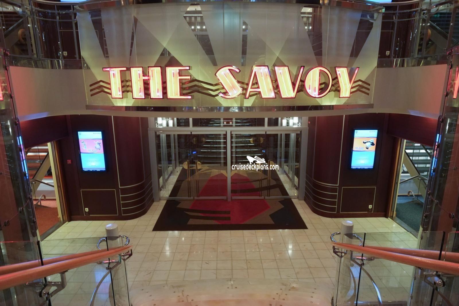 Also called The Savoy Theater. Seating 1362 guests with usually two productions per night to accommodate guests on main and second seating in the main dining rooms, shows range from dancing, tribute acts and acrobatics to West End style musical productions.