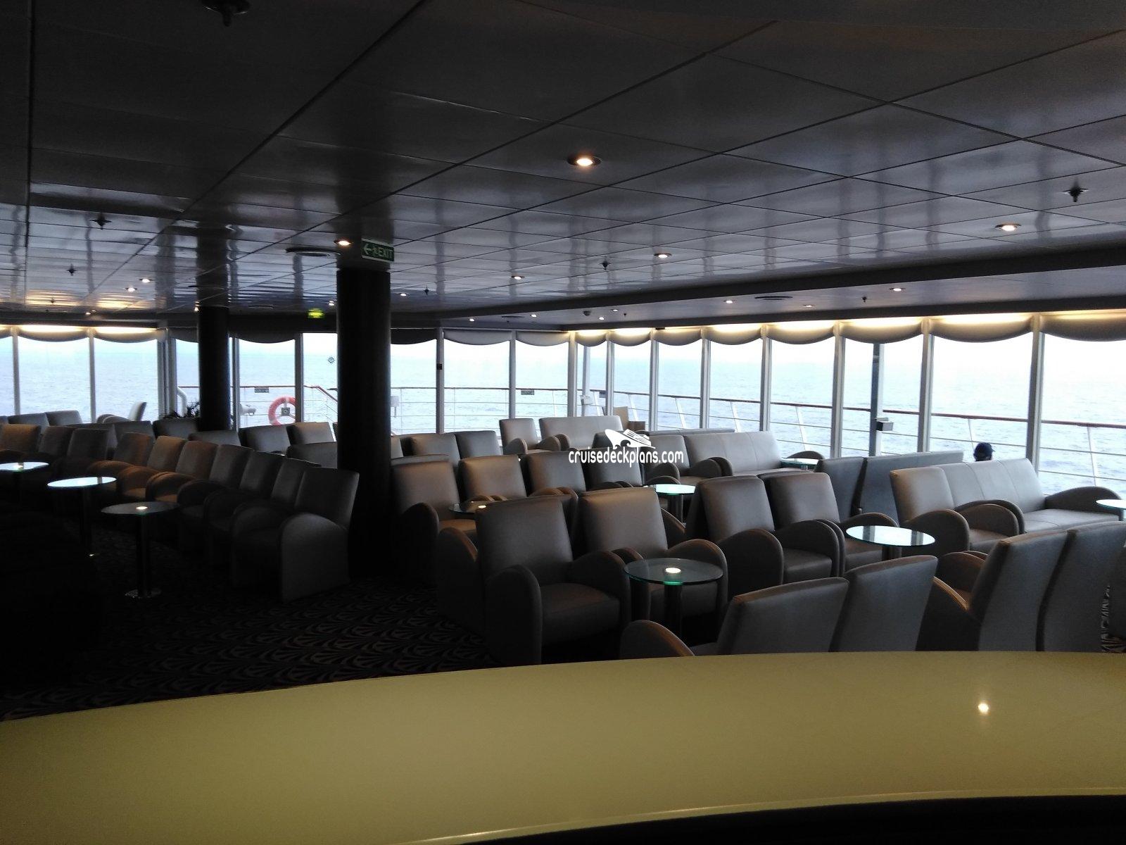 By day it offers a quiet place to sit and relax with views over the stern of the ship whilst by night it comes alive when the ship's DJ takes his place, usually around 11.30pm offering music and dancing late into the night. Seats 215 people.