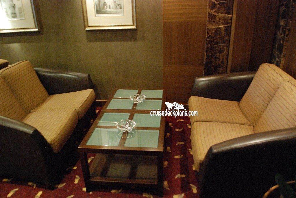 Seats 30 guests and as the name suggests is the ships cigar smoking lounge with a gentleman's club feel featuring dark wooden paneling, blue and red furnishings and leather armchairs for guests to relax in with a cigar and cognac.